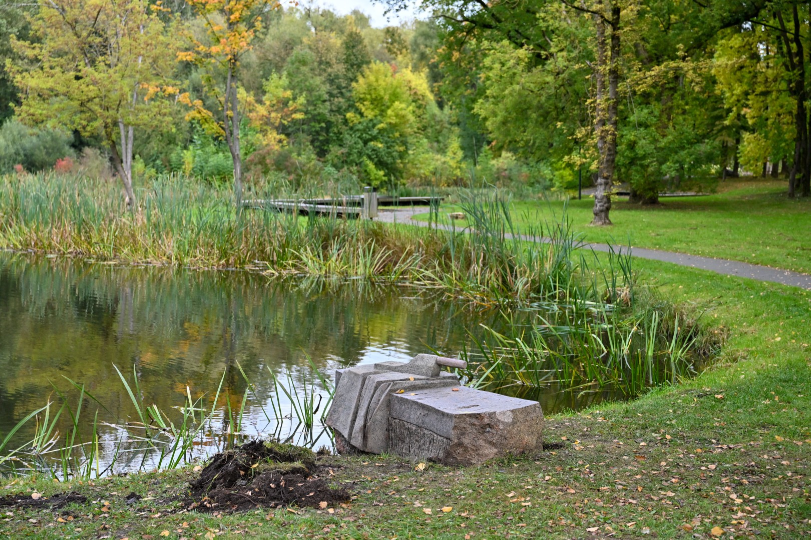 Prie šiame parke suformuotos akmenų upelio vagos ketinama pastatyti Andriaus Siderkevičiaus skulptūrą „Gražūs“.