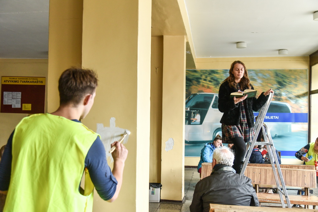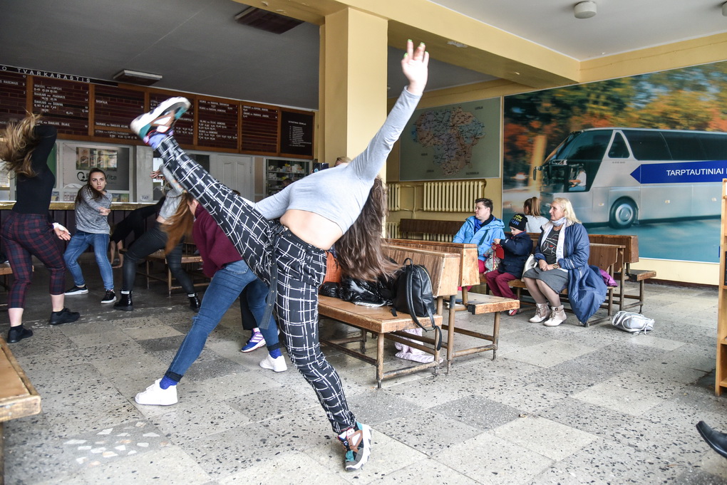 Užsukusieji į Panevėžio autobusų stotį šiandien tapo išties neeilinio reginio žiūrovais.