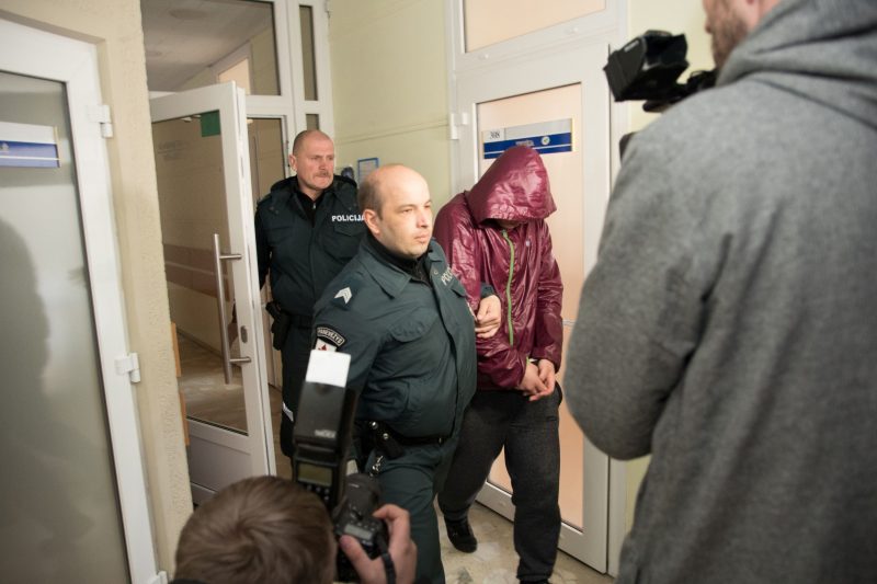Į teismą įtariamieji buvo atvedami surakinti antrankiais po vieną maždaug kas valandą. Visi trys kiek įmanoma slėpė veidus nuo žurnalistų. Nors įtariamieji sulaikyti jau nuo pirmadienio, nė su vienu pasimatyti į teismą artimieji neatėjo.