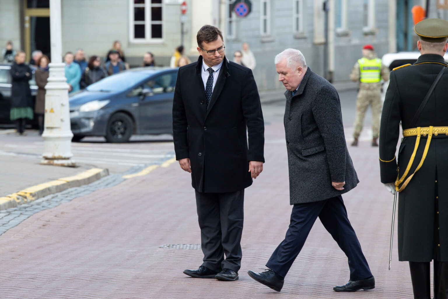 Ceremonijos metu ministrai pasveikino karius ir kitus krašto apsaugos sistemos bendruomenės narius.