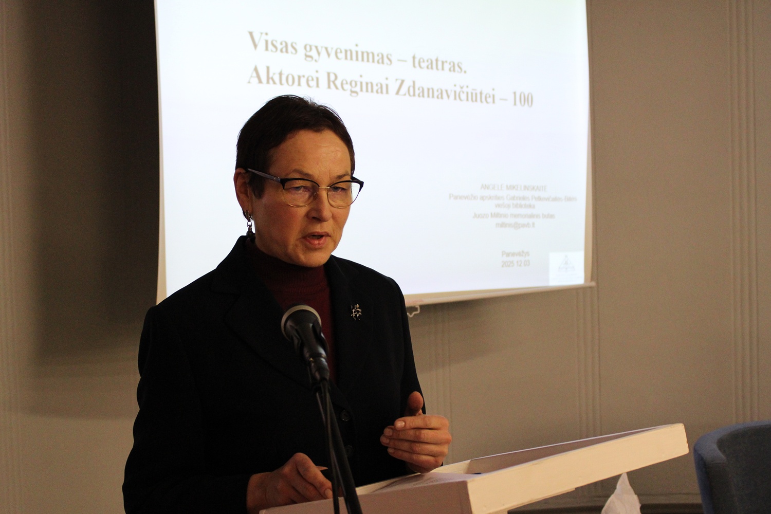 Konferenciją tęsė Gabrielės Petkevičaitės-Bitės viešosios bibliotekos kultūros paveldo tyrinėjimo ir skaitmeninimo skyriaus darbuotoja Angelė Mikelinskaitė. Ji priminė ilgametę Panevėžio (dab. Panevėžio Juozo Miltinio) dramos teatro aktorę – aktorę Reginą Zdanavičiūtę, kurios šimtmečio jubiliejus (1925–2015) šiemet minimas. Teatro žmonių meiliai vadinta „Rene“, ji į sceną atėjo karo metais, o vėliau tapo viena ryškiausių primadonų. Režisieriaus Juozo Miltinio mokinė teatre ir kine per daugiau kaip 60 kūrybos metų sukūrė per 120 vaidmenų. Pasakojimą apie įsimintiniausius spektaklius, vaidmenis lydėjo archyviniai kadrai, fotografo Kazimiero Vitkaus nuotraukos, liudijančios aktorės sceninį talentą. Bibliotekoje eksponuota ir šiai sukakčiai paminėti Panevėžio apskrities G. Petkevičaitės-Bitės viešosios bibliotekos parengta kilnojama fotografijų paroda „Apie gyvenimo džiaugsmą ir skausmą. Aktorei Reginai Zdanavičiūtei – 100“, atskleidžianti svarbiausius artistės asmeninio gyvenimo ir teatrinės kūrybos momentus.
