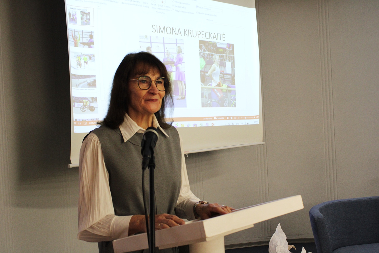Panevėžio sporto centro sporto istorijos specialistė, muziejininkė Janina Sinickienė pristatė vieną ryškiausių Lietuvos sportininkių, treko dviratininkę, pasaulio rekordininkę ir Europos bei pasaulio čempionatų prizininkę Simoną Krupeckaitę. Pranešėja pasakojo apie dviratininkės sportinio kelią pradžią Panevėžyje, karjeros metu iškovotus dešimtis pasaulio ir Europos čempionatų medalius, pasiektus rekordus, dalyvavimą net penkiose olimpinėse žaidynėse, tapimą Lietuvos metų sportininke. Pati S. Krupeckaitė buvo trumpam atvykusi ir kalbėdama konferencijos pradžioje pabrėžė, kad jos sėkmės pagrindas visi pasiekimai – bendras komandos darbas ir artimųjų palaikymas. Konferencijos metu buvo eksponuojama unikali dviratininkės sportinių relikvijų ekspozicija: pasaulio ir Europos čempionatų bei olimpinių žaidynių medaliai, Lietuvos didžiojo kunigaikščio Gedimino ordino kryžius, sportinė apranga, dalyvio kortelės ir kt.