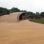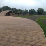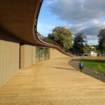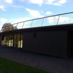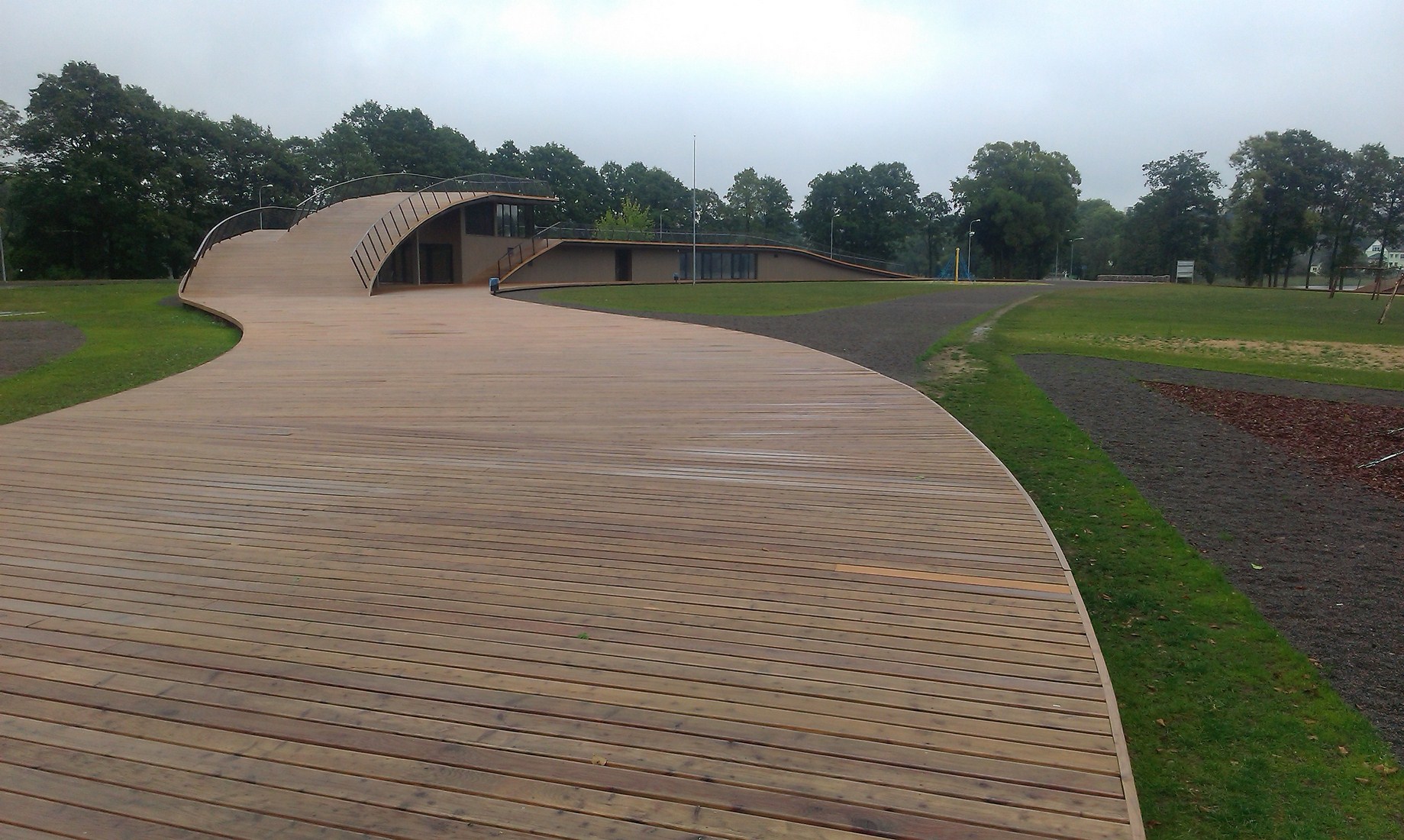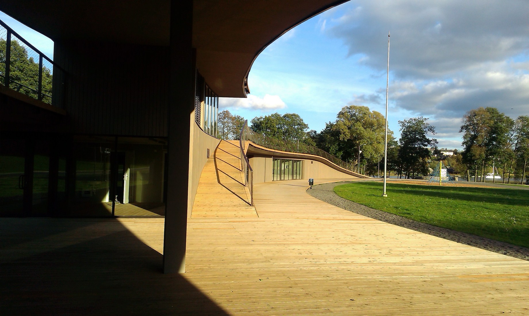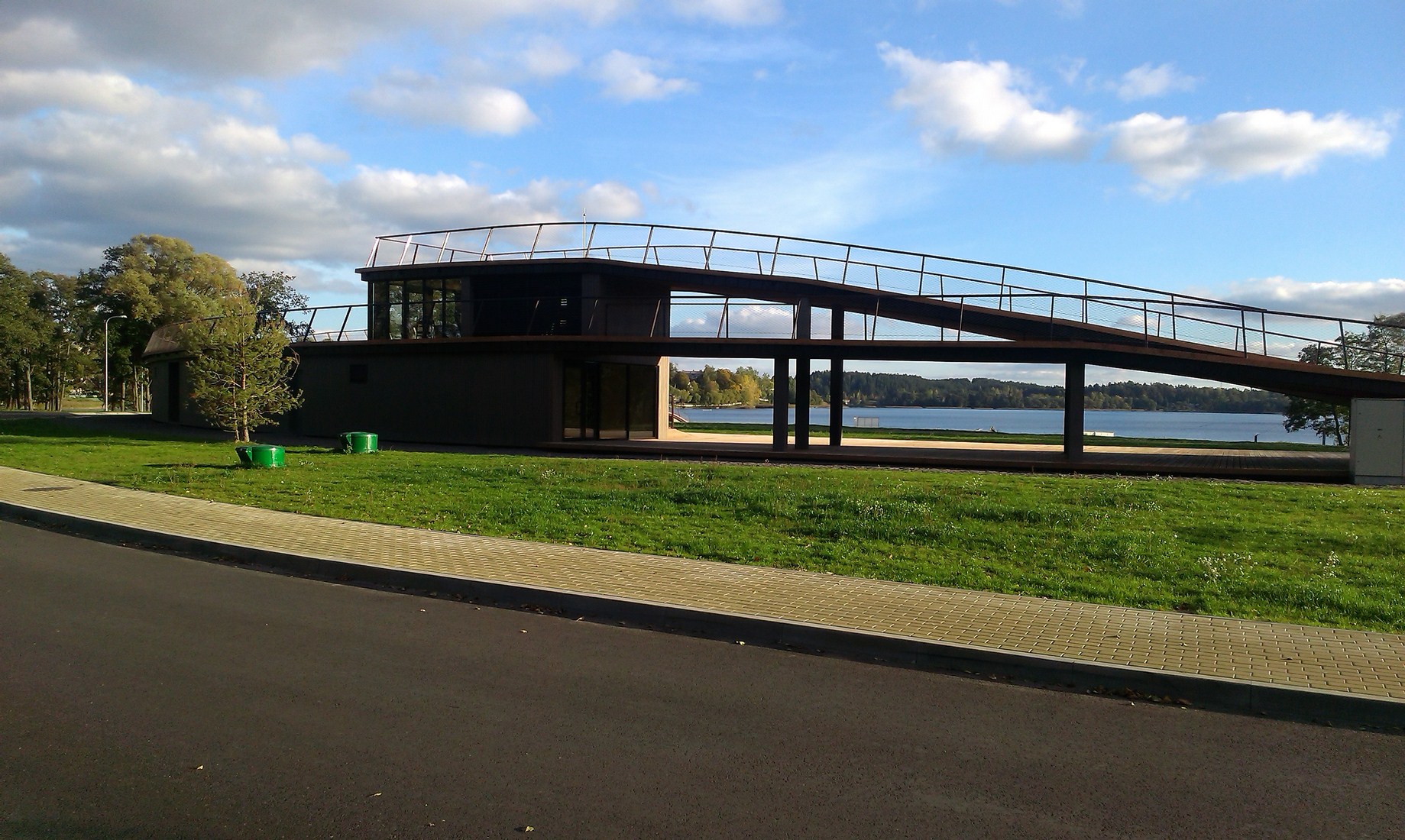 Architektai pasirinko susiliejimo su aplinka ir organiško jos papildymo kelią: dalis komplekso atsiduria žemiau privažiuojamojo kelio. Laikui bėgant pilkėjanti mediena įgaus daugiau gamtos atspalvių. Tokius pokyčius labai įdomu stebėti ne vien iš estetinės, bet ir iš praktinės pusės – kaip keičiasi maumedžio dangos savybės, ar sunku , brangu ją prižiūrėti ir ja naudotis? Tačiau turbūt labiausiai džiugina tai, kad išvengta regioninės architektūros imitavimo ir bandymų pritaikyti jos stiliaus elementus nebūdingai paskirčiai ir masteliui.