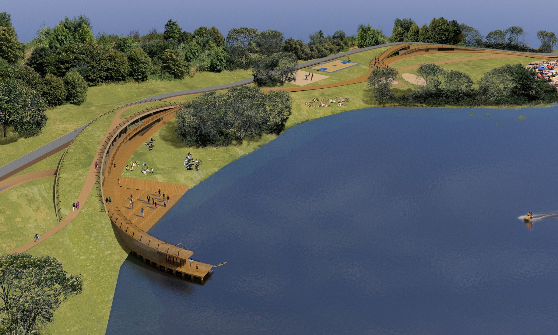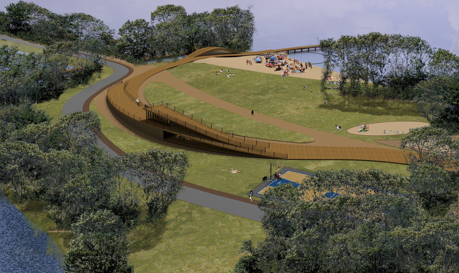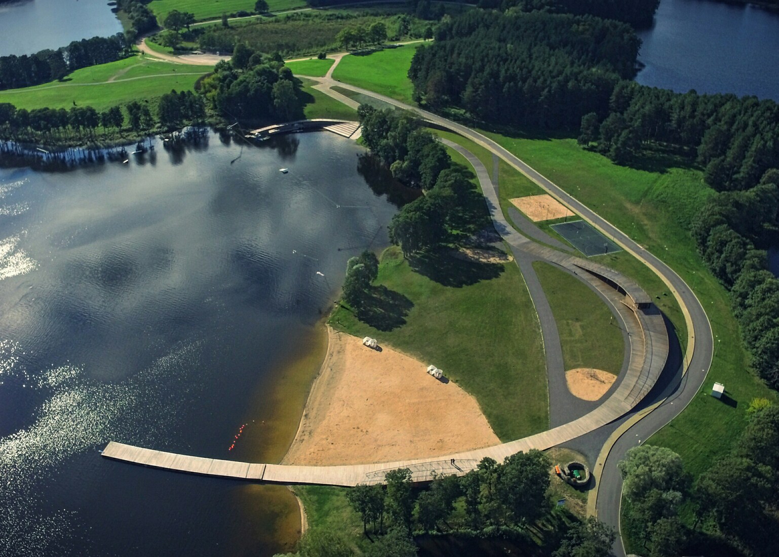 Kompleksas skirtas naudotis – visiems. Takas, kuriuo gali (ir sugeba) eiti kiekvienas, ir kuris veda prie vandens, yra galinga metafora. Tačiau vingiuojančio (kopų?) tako idėja nėra vien semantinis triukas, savo literatūriškumu padedantis laimėti konkursą. Medinio tako motyvas atkartotas Palangos H. Mončio parke, plastika atpažįstama Miško dainų parko Anykščiuose projekte ir kituose H. Štaudės ir partnerių projektuose. Zarasuose jis švelniai pakylėja virš pagrindinio korpuso virsdamas tinkamo mastelio apžvalgos aikštele ir sporto tribūna. Dėmesio nusipelno ir universalaus dizaino – prieinamumo visiems – principų išlaikymas. Visame komplekse nėra laiptų ir kitų kliūčių specialiųjų poreikių turintiems žmonėms.