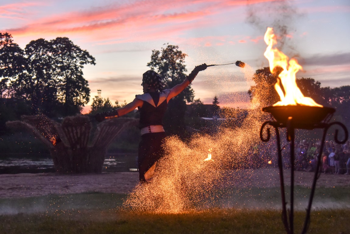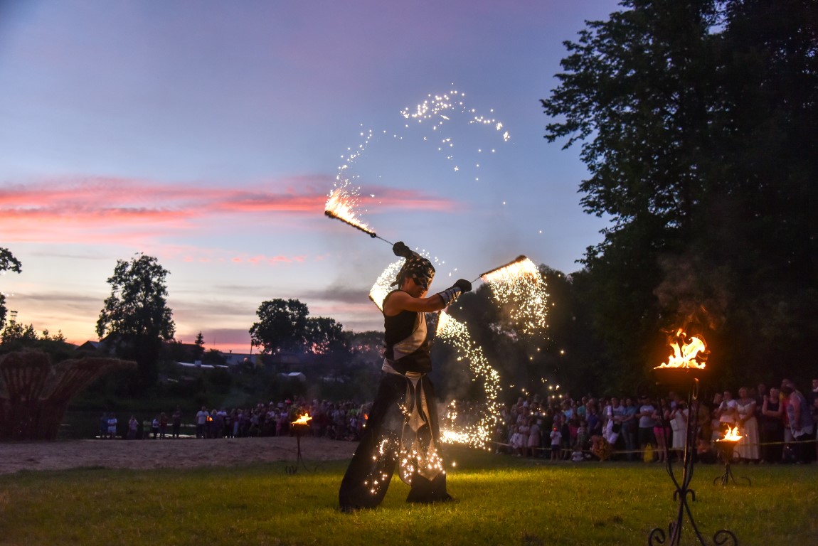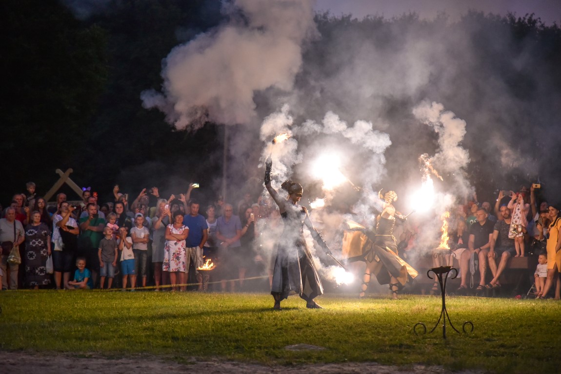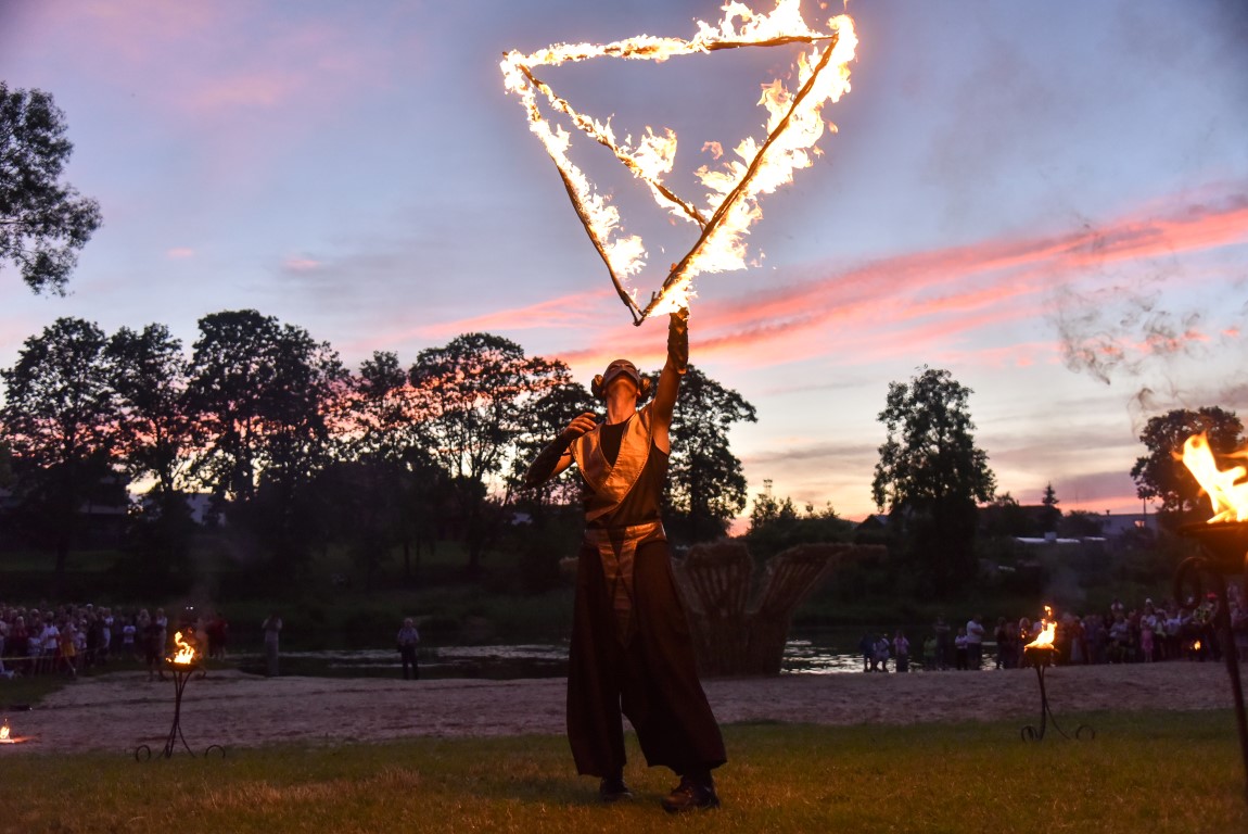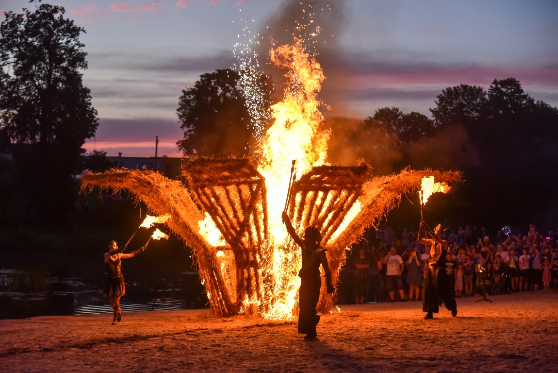 Šventinio vakaro kulminacija tapo saulės palydos su fakyrų įspūdinga ugnies programa. Unikalų šokį vainikavo uždegtas paparčio formos laužas.