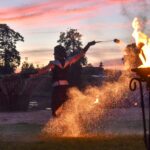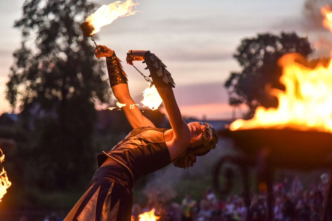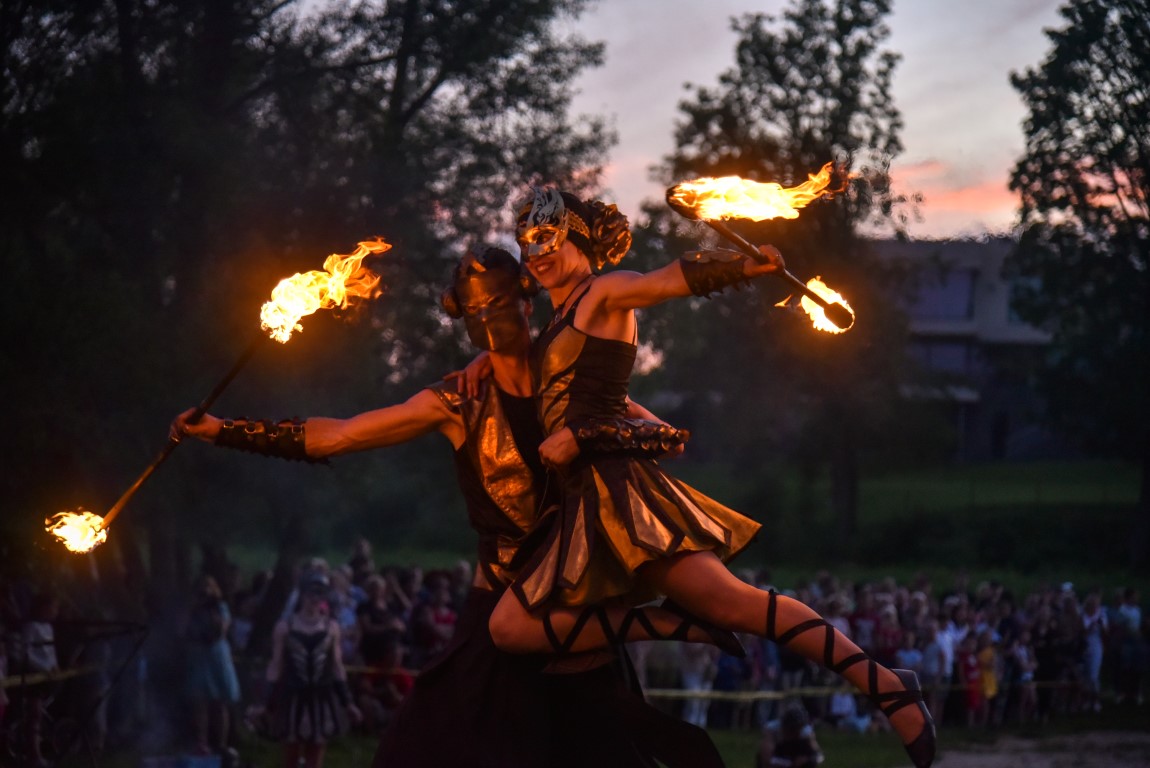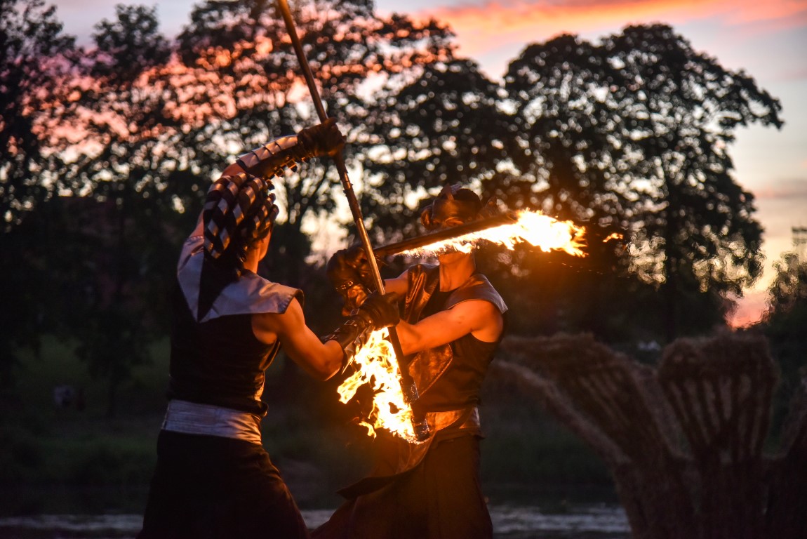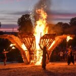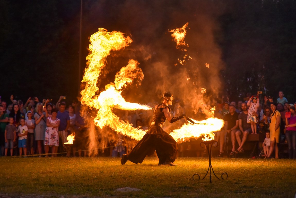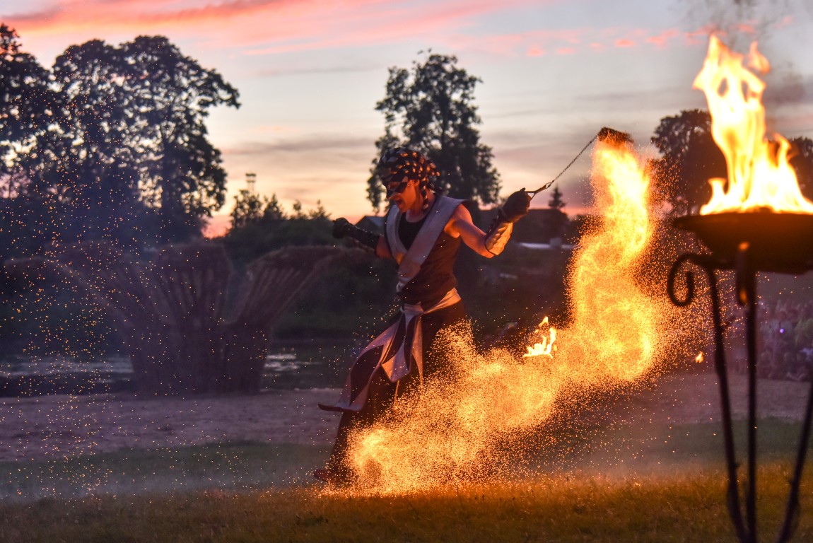Šventinio vakaro kulminacija tapo saulės palydos su fakyrų įspūdinga ugnies programa. Unikalų šokį vainikavo uždegtas paparčio formos laužas.