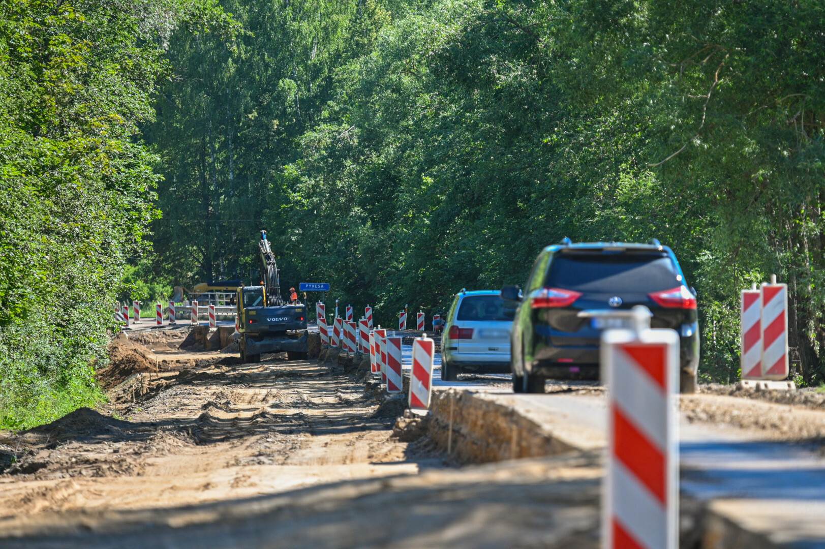 Stumbriškėnas pamena, jog pirmaisiais jo darbo metais važiuojant šiuo keliu tekdavo kirsti tuomet stovėjusį medinį tiltą per Pyvesos upelį. Tik įžengus į aštuntą praėjusio amžiaus dešimtmetį jo vietoje pastatytas tvirtas tiltas.