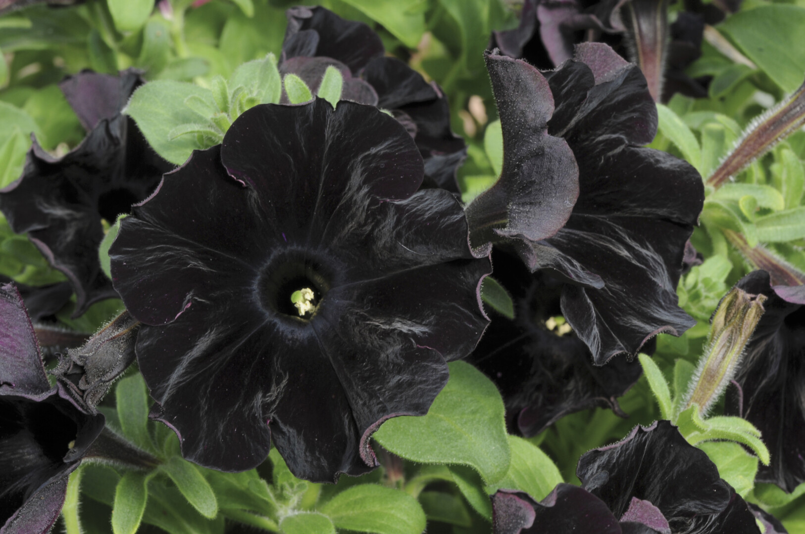 Visų šių petunijų žiedlapiai tokios sodrios violetiniai juodos spalvos, kad tikrai dažniausiai atrodo absoliučiai juodi.