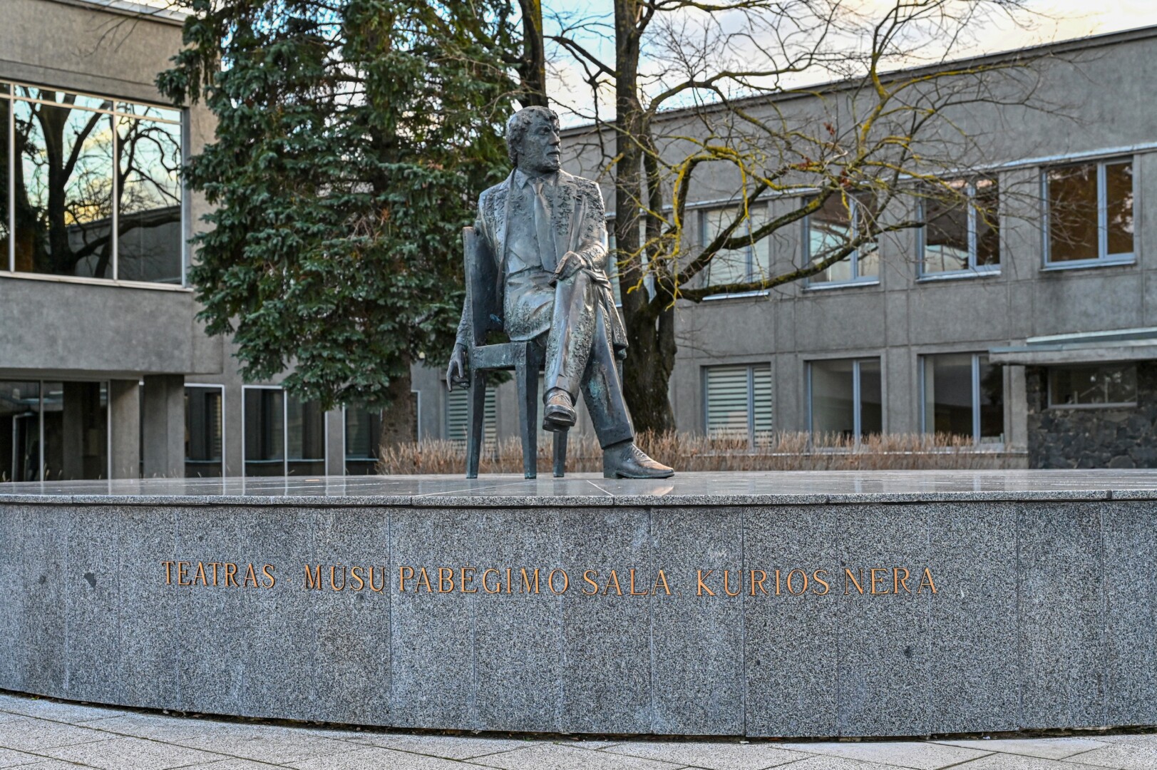 Panevėžio Laisvės aikštėje, šalia Juozo Miltinio dramos teatro, skamba ne tik garsaus režisieriaus, teatro įkūrėjo vardas, bet ir jo įkvepianti frazė: „Teatras – mūsų pabėgimo sala, kurios nėra.“