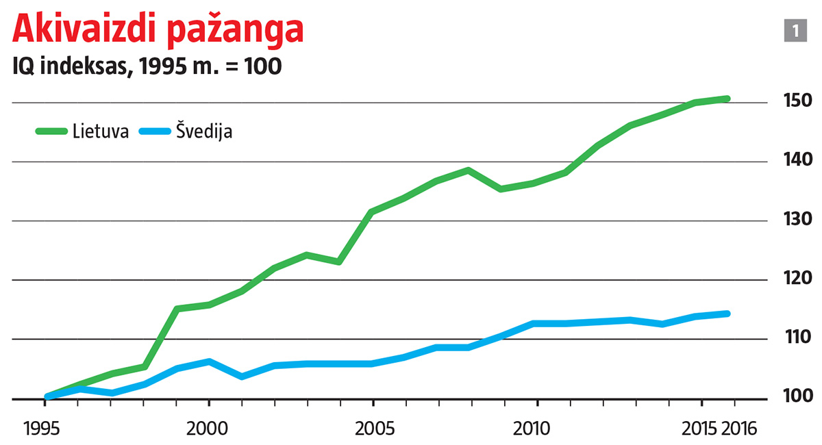 Šis IQ indeksas rodo, kokią pažangą Lietuva padarė per pastaruosius du dešimtmečius, palyginti su Švedija. Indeksas skaičiuojamas nuo 1995-ųjų (tais metais galima rasti nepriklausomybę atgavusios valstybės pirmuosius išsamius statistikos duomenis) iki naujausių rodiklių (2014–2016 m.). Apskaičiuojant šį indeksą ir Lietuvos, ir Švedijos rodikliai buvo lyginami su atitinkamoje srityje pirmaujančios valstybės rezultatu.