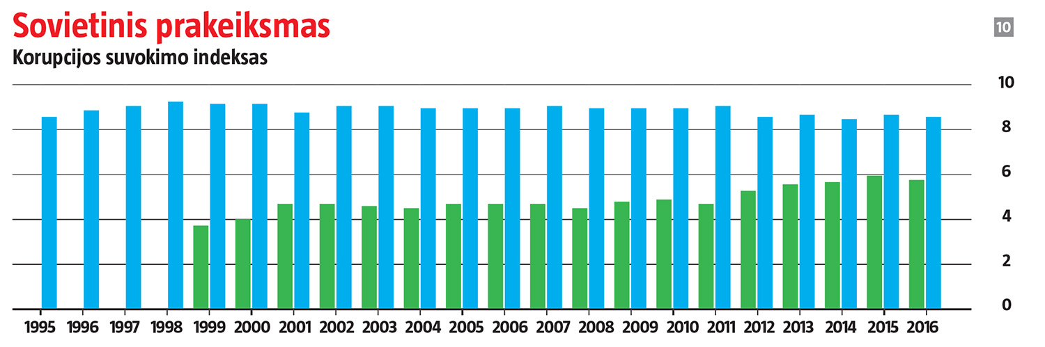 Korupcijos suvokimo indeksas rodo, kad Švedijoje pastaruosius du dešimtmečius situacija nesikeičia, o Lietuvoje šiek tiek gerėja, tačiau vis tiek gana prasta, palyginti su Šiaurės kaimyne.