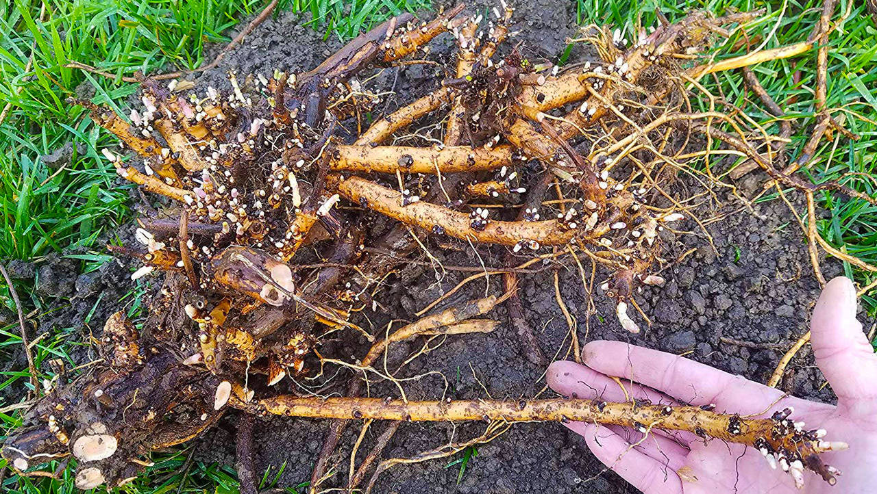 Rudenį atkapstykite žemę aplink apynį ir kuo labiau apnuoginkite šaknis. Kuo stipresni bus šalčiai, tuo didesnė tikimybė, kad pažeis šaknų sistemą ir pavasarį augalas jau nebebus gyvybingas.