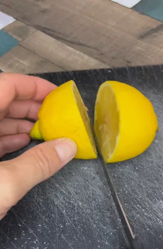 Trinimas citrina. Likusią citrinos pusę naudokite kaip šveitiklį, įtrindami mišinį į stiklą.