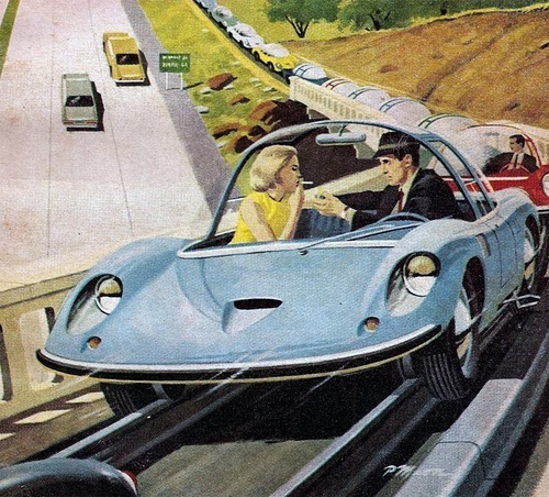 Idėja suprojektuoti automobilius be vairo, galinčius riedėti tik trasomis, nėra nauja. Tokių trasų, kertančių šalis, jau yra. Tačiau lieka neaišku, kaip automobilis nuriedės nuo šių bėgių pasiekęs galutinį tašką. Na, palikime tai spręsti ateities kartoms.