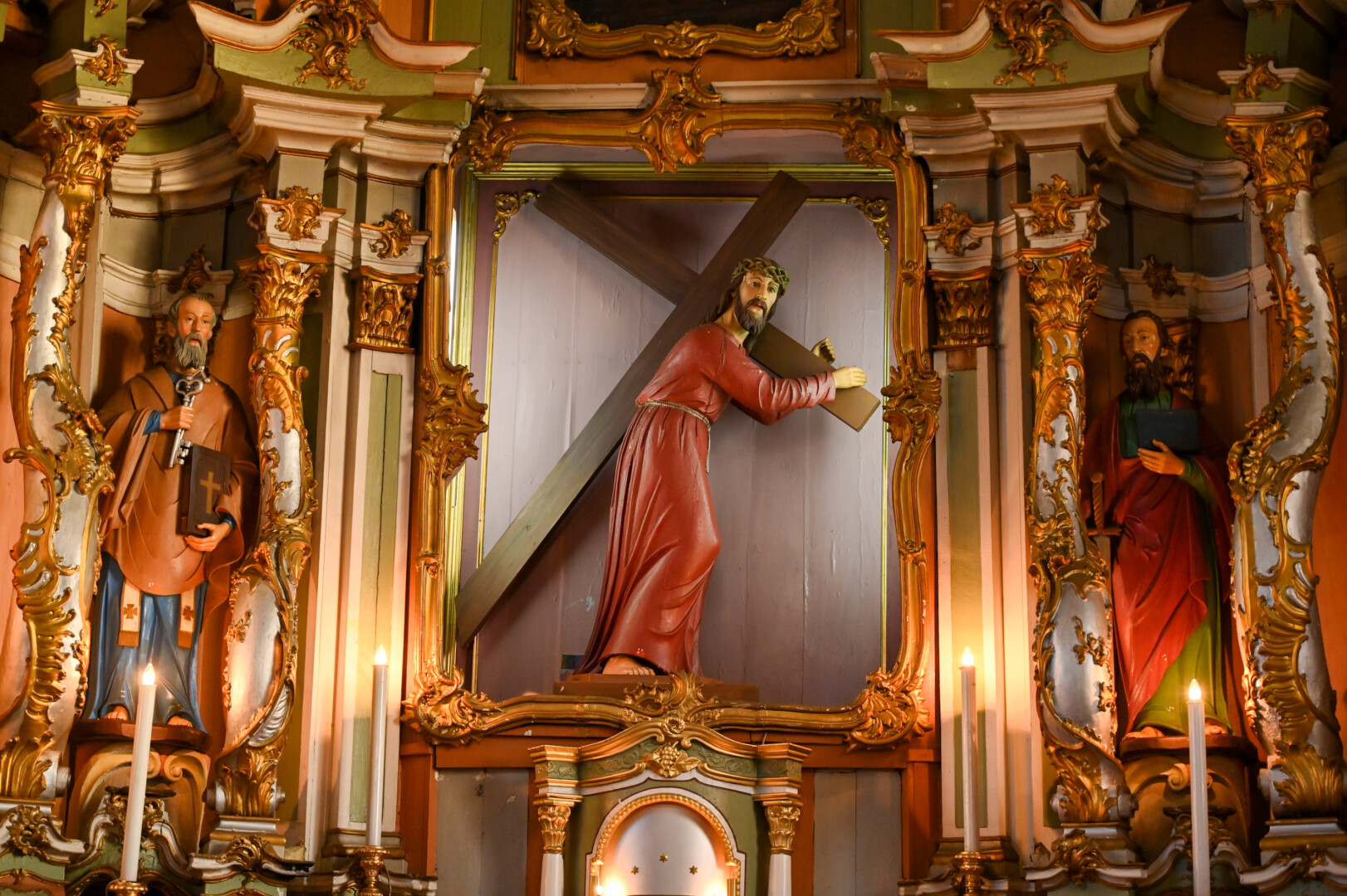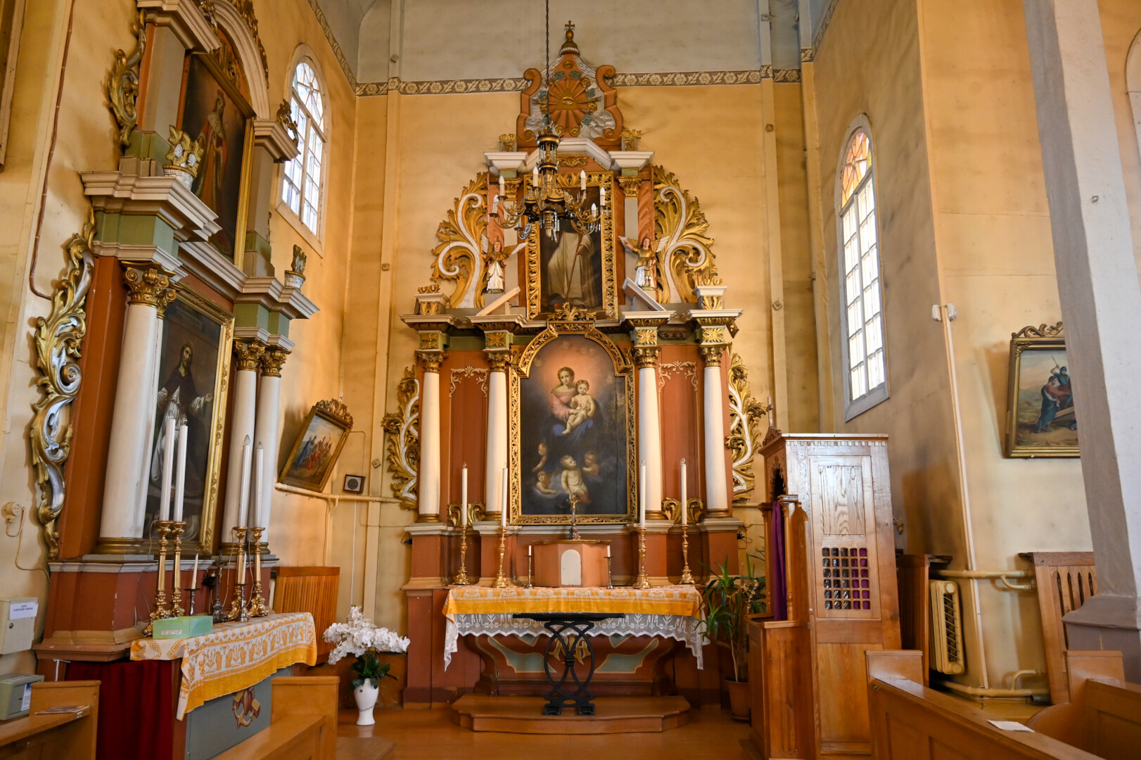 Didysis Viešpaties Jėzaus altorius, kurį puošia du paveikslai ir septynios medinės skulptūros, jau šaukiasi remonto. Kada paskutinį kartą jis remontuotas, dvasininkas net nerado informacijos.