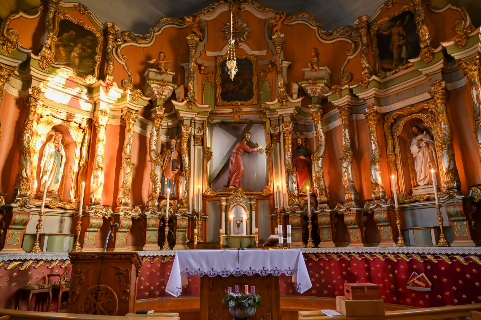 Artėjančiam Kalėdų stebuklui ruošiasi nedidelė, bet išskirtinė, barokinės architektūros Smilgių Šv. Jurgio bažnyčia, garsėjanti ypatingu altoriumi – vienu gražiausių ir puošniausių ne tik Lietuvoje, bet ir visose Baltijos šalyse.