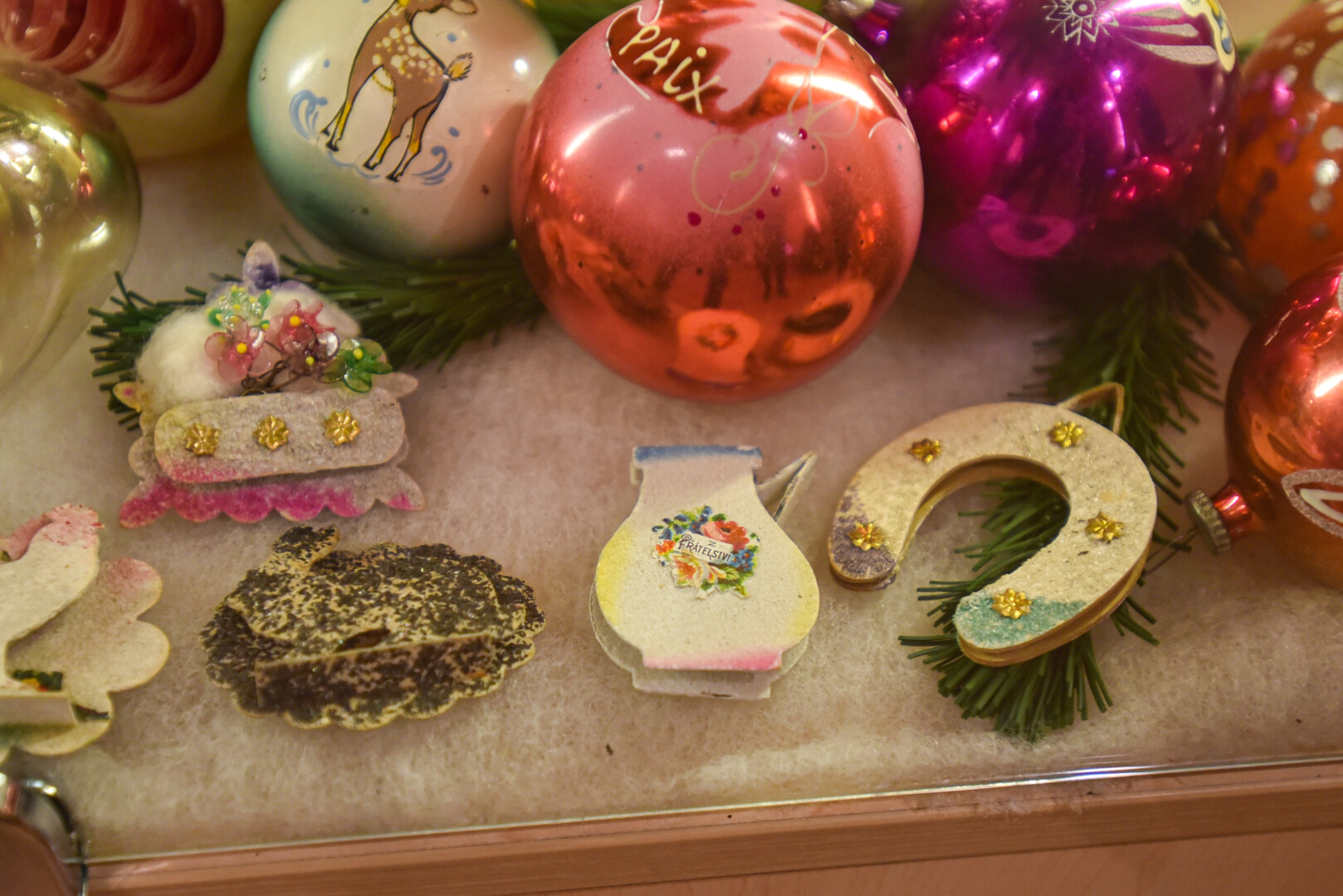 „Šiemet pas mus atkeliavo ir labai reti čekiški žaisliukai, pagaminti iš kartono. Jie dvipusiai ir sujungti kartono juostele, o visą grožį, spindesį ir žavesį žaisliukams suteikia Venecijos rasa – labai smulkūs stikliniai burbuliukai. Šie žaisliukai buvo gaminami tik devynerius metus – gamybą nutraukė Antrasis pasaulinis karas, todėl jie itin vertinami kolekcininkų“, – apie vieną naujausių eksponatų pasakojo V. Karklytė.