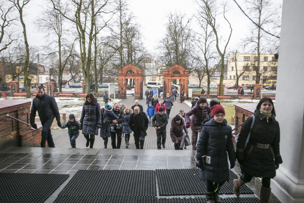 Su vaikais ir mažiausiuoju anūkėliu į bažnyčią atskubėję Algis ir Sandra Kaminskai teigė, kad Kalėdos visada būna smagi šventė, nes grįžta vaikai ir anūkai. O kadangi jų jaunėlis sūnus niekada nepraleidžia bažnyčioje vykstančių iškilmingų mišių ir procesijų, per Kalėdas į bažnyčią eina visi.