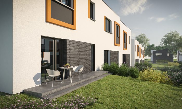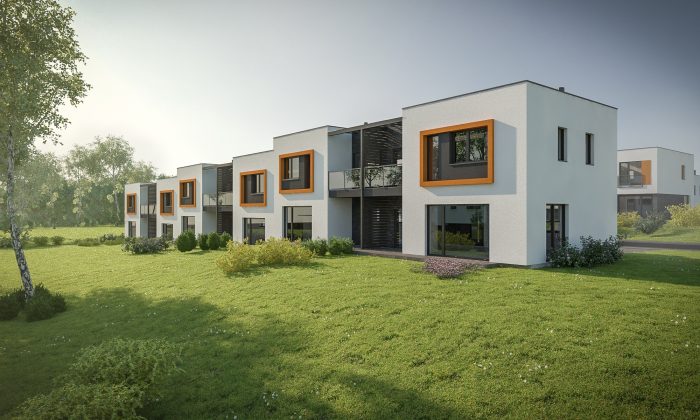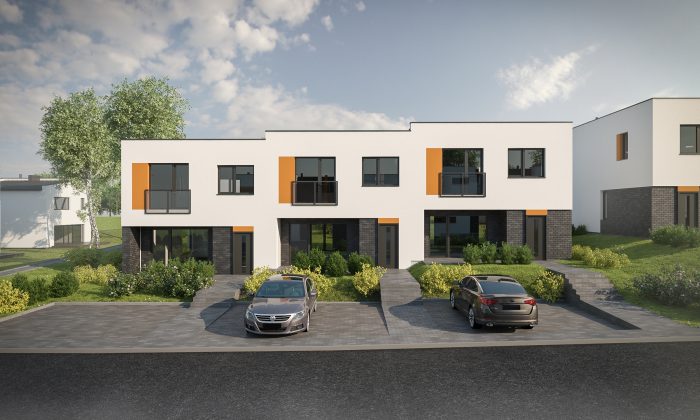 • 2 aukštų, 4 kambarių kotedžai šešiabučiame arba dvibučiame pastate – 95 m2