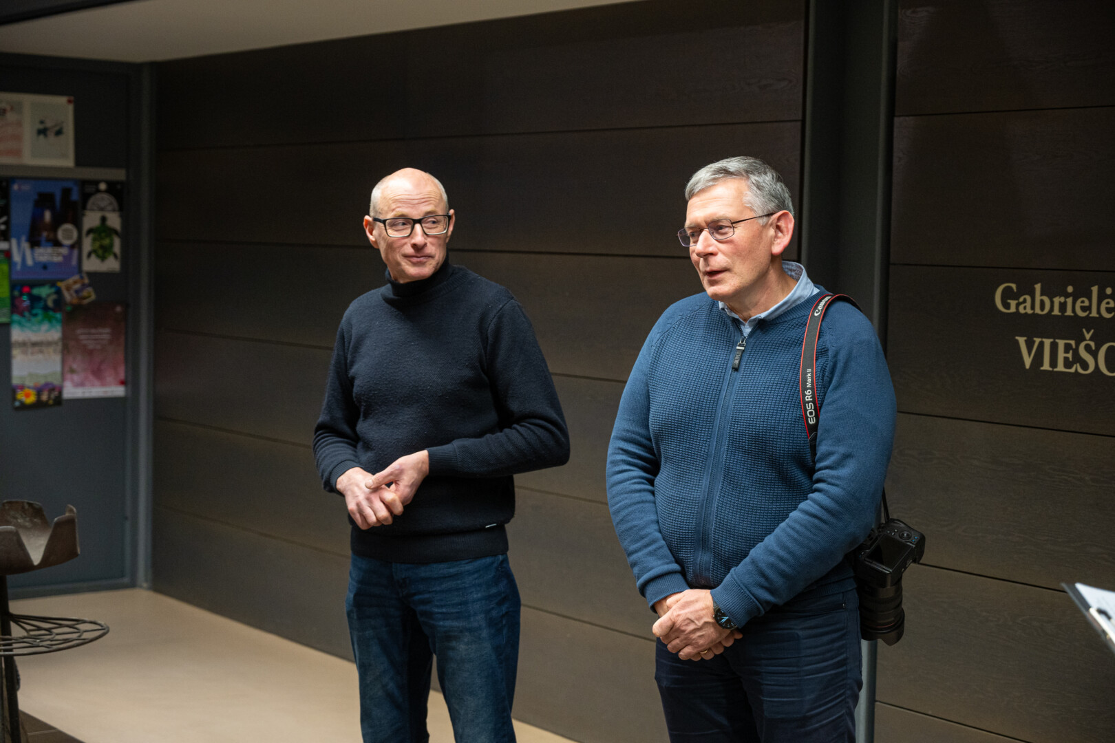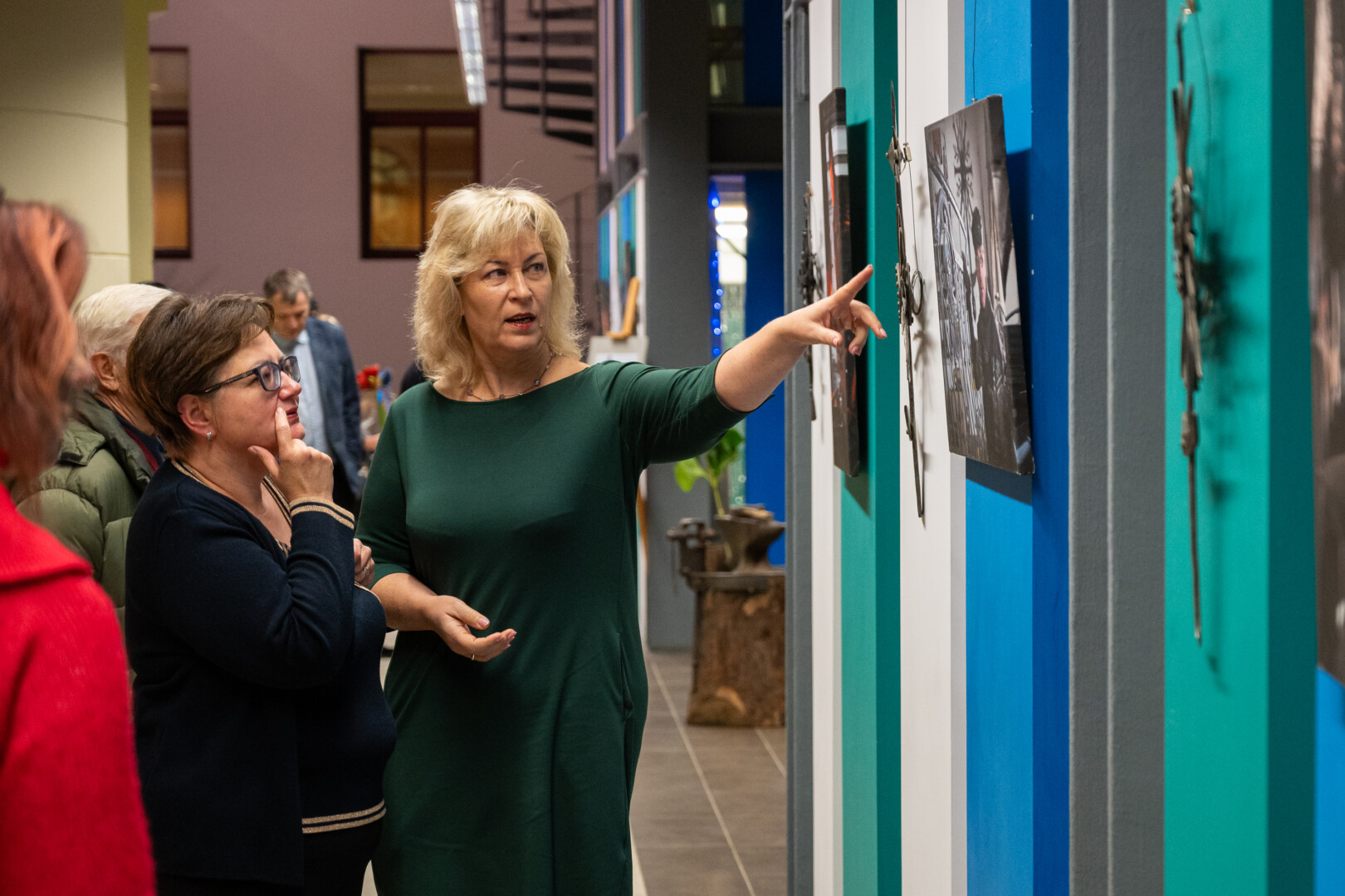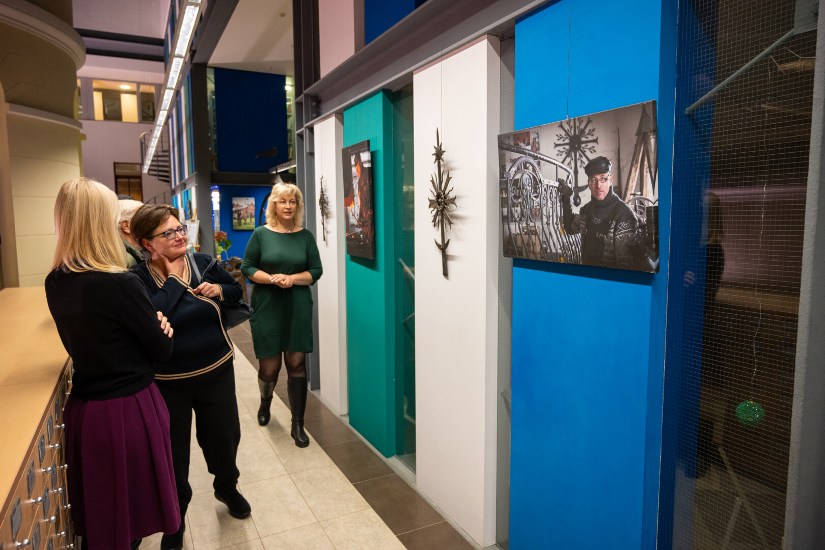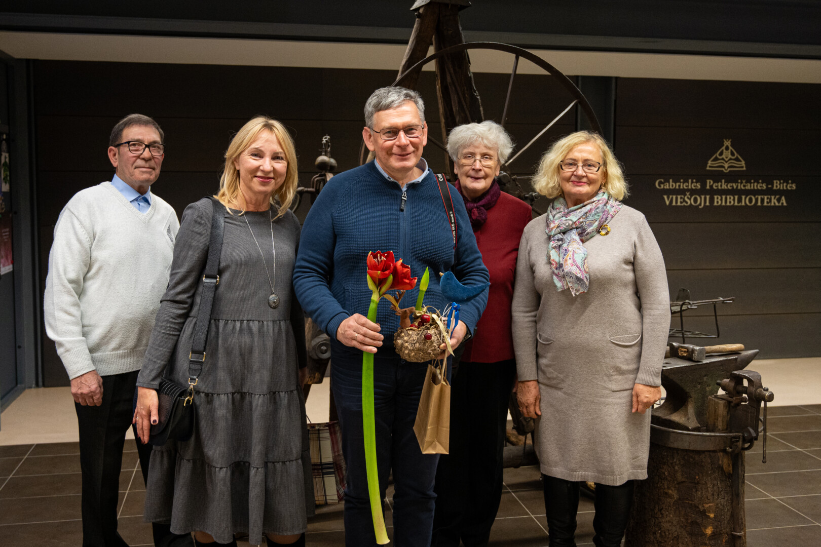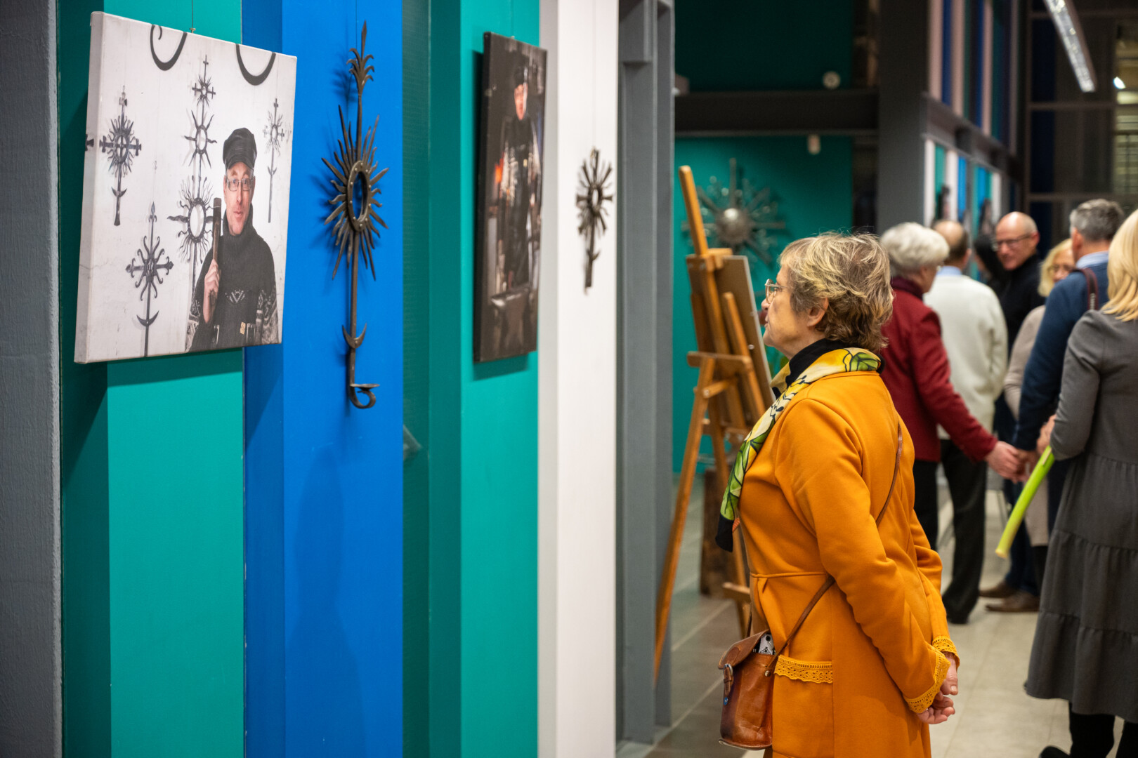 Juodus S. Kronio kryžius bibliotekoje papildo spalvos – Gintaro Lukoševičiaus nuotraukos, pristatančios ne tik tautodailininko kūrybą bei asmenybę, bet ir liudijančios dviejų kūrėjų bičiulystę.