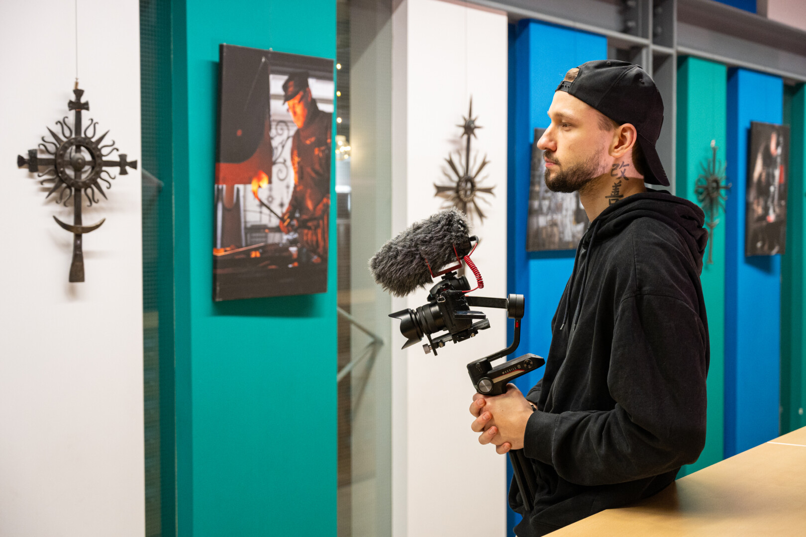 „Tąsyk Sauliaus dirbtuvėse buvau pirmąsyk, nors pažįstami iš anksčiau, esame dirbę su jo a. a. žmona Birute. Įspūdis didžiulis – aplinka, iki raudonumo įkaitęs metalas, kalvio rankos… Turbūt todėl ir fotosesija pavyko iškart, o kalvystės ir fotografijos duetą galima tęsti, plėsti“, – pasakoja G. Lukoševičius.