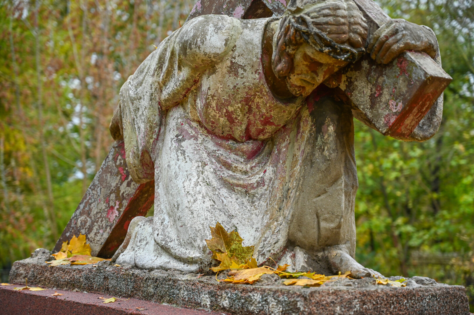 Apie 1932-uosius statyto Šv. Zitos draugijos narių antkapio-skulptūros nuo laiko ir aplinkos poveikio dažai nusilupę, pati skulptūra suskeldėjusi – nebeliko net krepšelio, kurį laikė šv. Zita. Dar prasčiau atrodo skulptūros „Kristaus širdis“ ir „Suklupęs Kristus“.