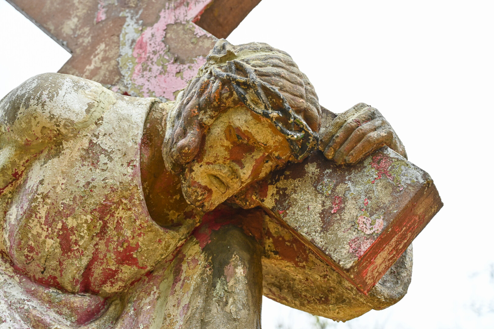 „Korozijos apimta armatūra vos paliesta pradeda trupėti, byrėti ir iš vidaus pradeda sprogdinti pačią skulptūrą. Todėl abiejų Kristaus skulptūrų galvos jau buvo suskilusios gabalais. Bijojau, kad pradėjus darbus jos gali visai suskilti. Jau liniuotę buvo galima į tuos plyšius įkišti“, – pasakoja B. Pučkis.