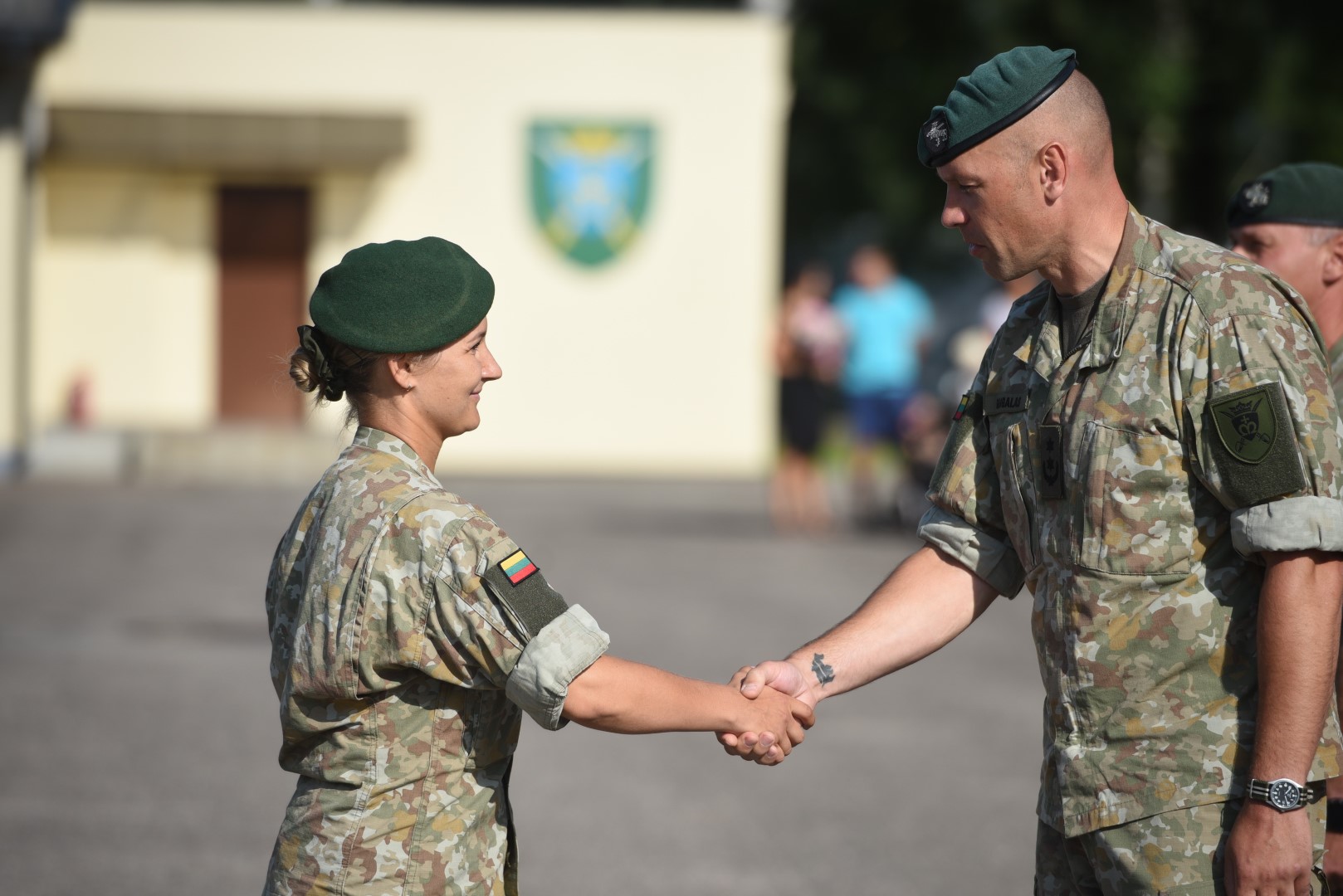 Ceremonijos metu buvo apdovanoti ir pasižymėję pratybose iniciatyvūs kariai. Taip pat pasveikintas geriausias VII laidos nuolatinės privalomosios pradinės karo tarnybos karys, kuria tapo Štabo kuopos štabo būrio CBRB skyriaus žvalgybos grandies žvalgė eil. Gertrūda Statkutė.