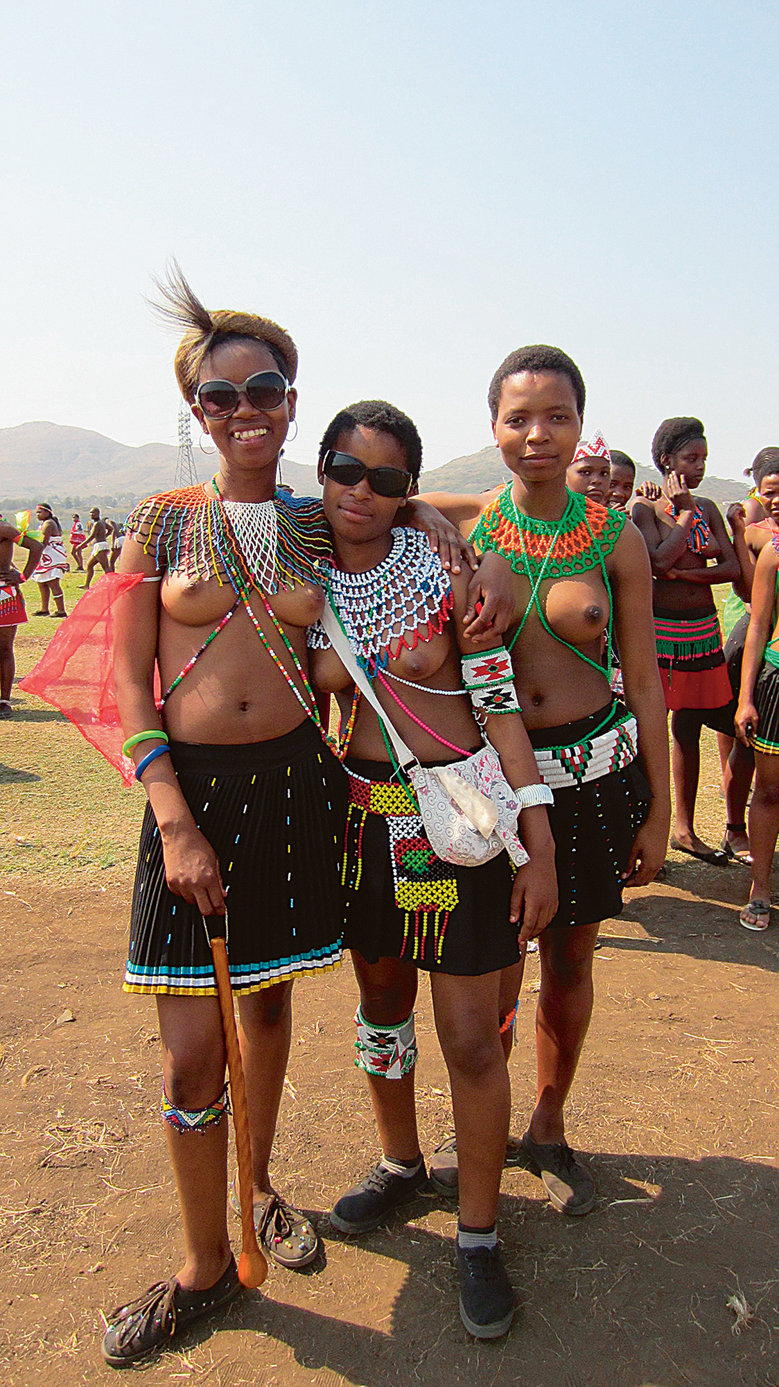 Pamažu pradedu susivokti erdvėje ir suprasti festivalio koncepciją. Tūkstančiai mergaičių, padalytų į mažesnes grupeles (amaqhikiza), būriuojasi už gerų 500 metrų nuo prekybininkų palapinių esančioje dulkėtoje aikštėje. Prieš pradėdamos ritualinį žygį pas karalių, jos drąsinasi dainomis ir šokiais. Susispietusios į didžiulį ratą, viena po kitos išeina į jo centrą ir aukštai keldamos varpeliais papuoštas kojas staiga trepteli, sumušdamos pėdomis žemę taip, kad pataikytų į katutėmis aplinkinių plojamą taktą. Tai man primena savotišką senovinę šokių kovą, kai mergaitės bando ne tik parodyti gracingus judesius, bręstančius jaunus kūnus, bet ir išreikšti karingą charakterį, nuo seno būdingą zulų moterims.