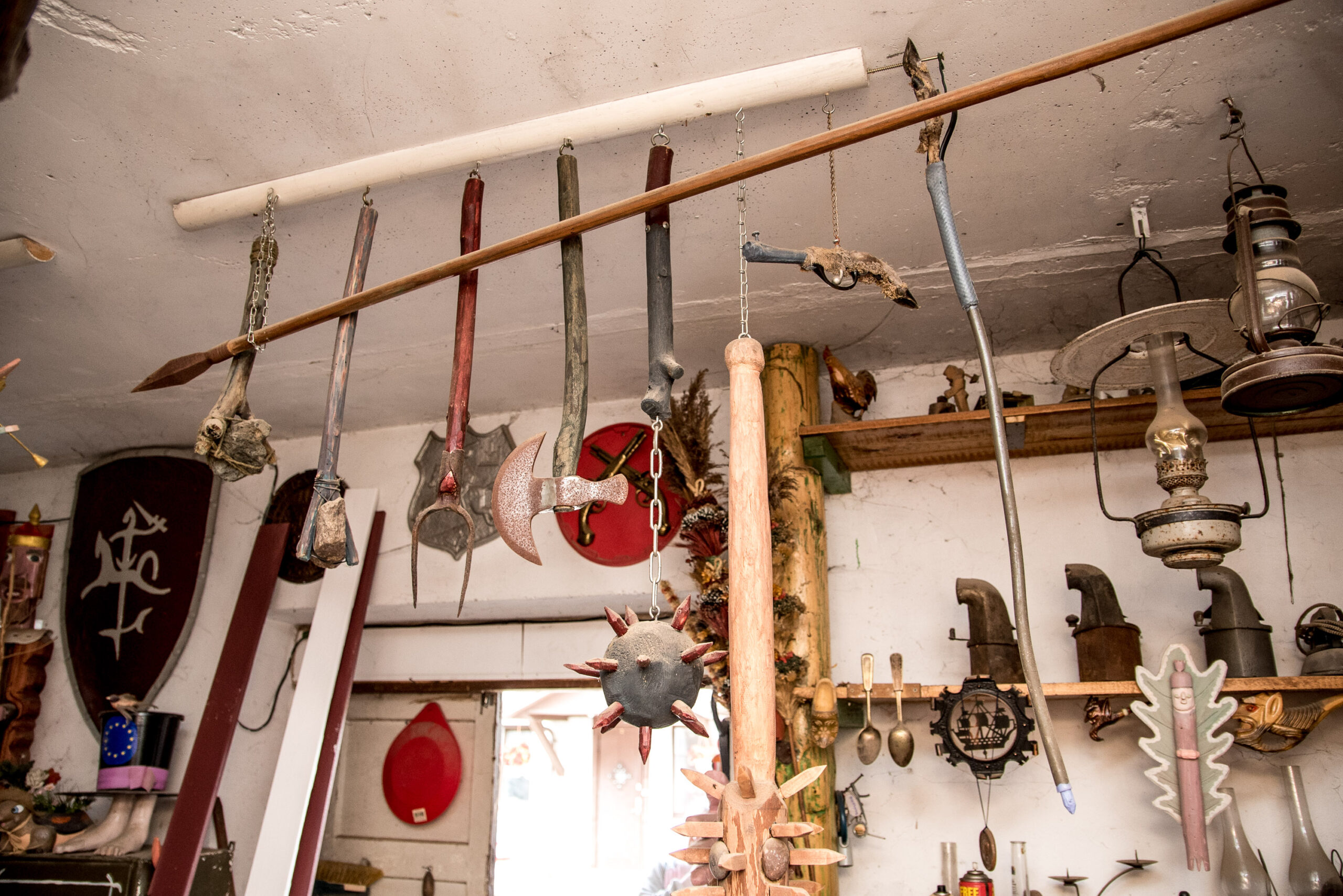 Kiekvienas darbas turi savo istoriją. Rodydamas senus įrankius, kirvukus, Anicetas rimtu balsu pasakoja, kaip prieš kelis dešimtmečius kasdami kanalizaciją meistrai aptiko kažin kokius senus daiktus, menančius XIII amžių.