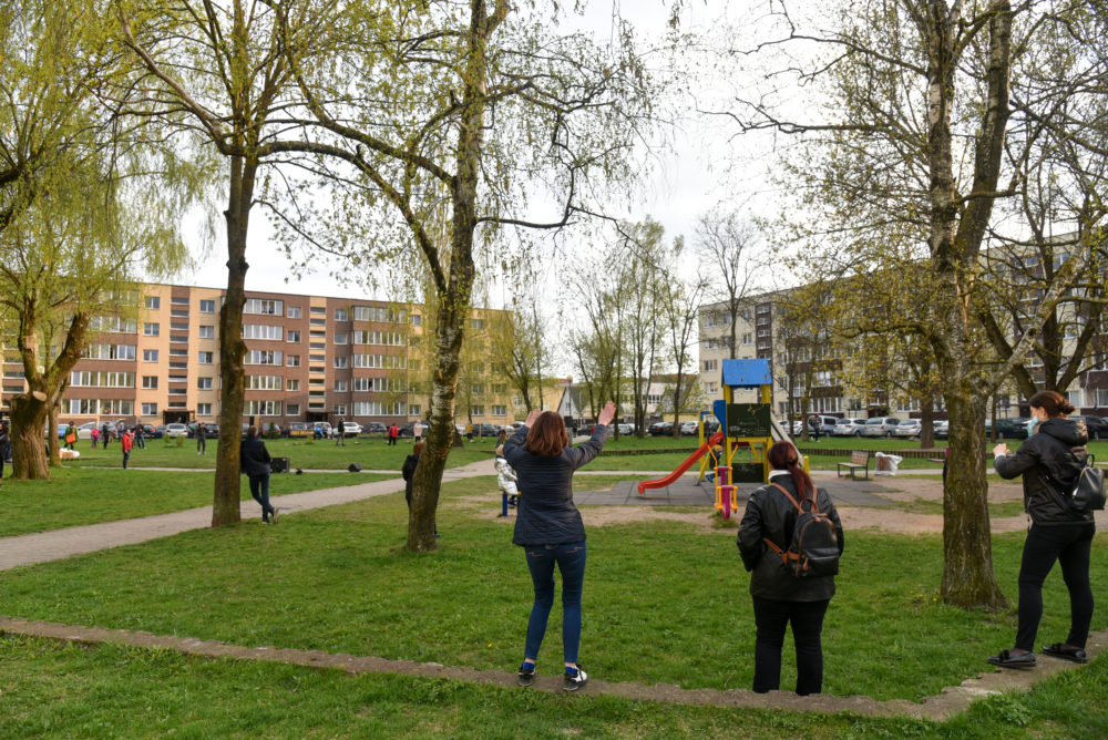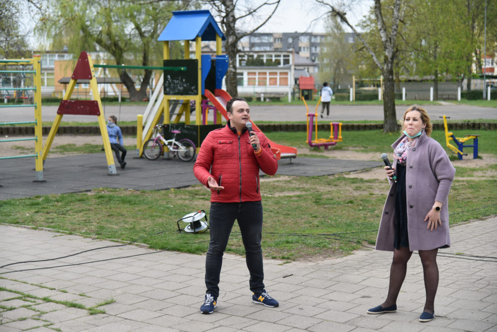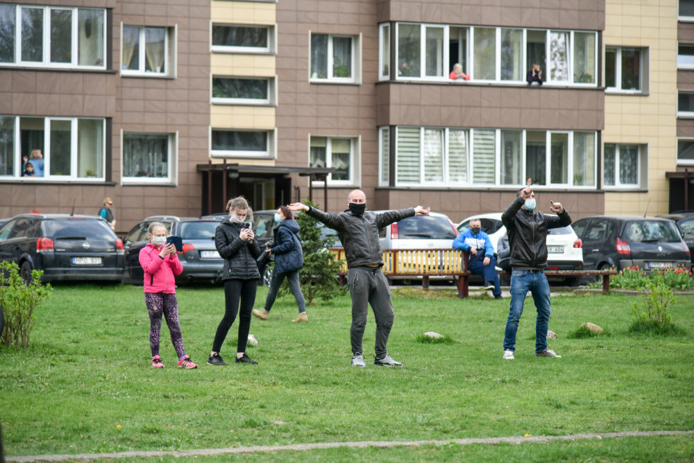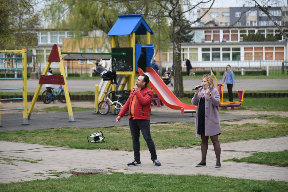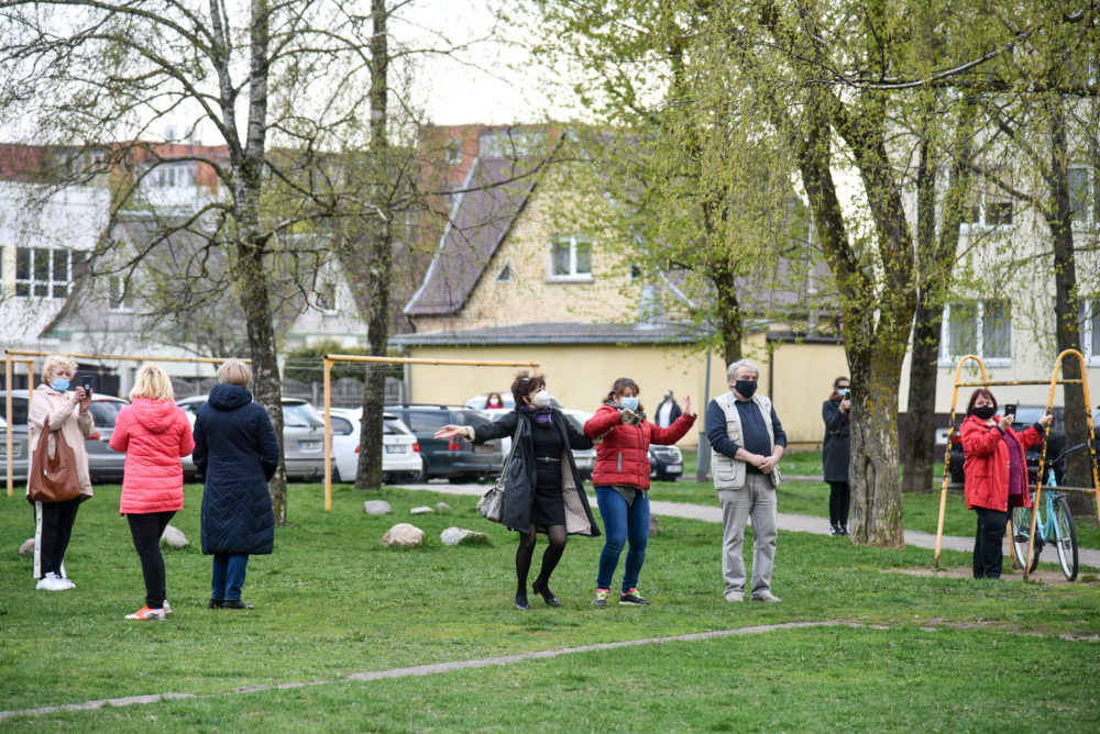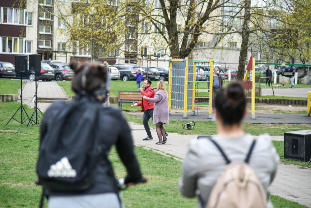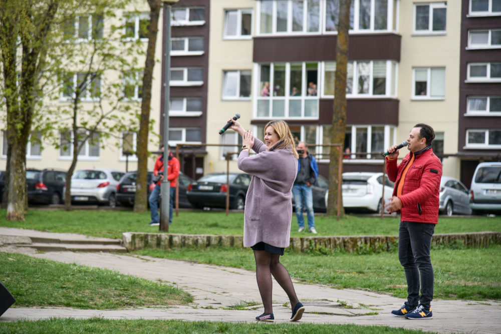 Panevėžiams puikiai žinomi atlikėjai Vaidas ir Birutė Dzežulskiai dovanojo savo gyvo garso koncertą, o žiūrovai jiems pritarė ir plojo iš savotiškų ložių – savo butų balkonų. Netradicinės akcijos rengėjos – Asta Štaraitė ir Justina Aleknienė – žada kiekvieną dieną nauju koncertu stebinti vis kitą kiemą.