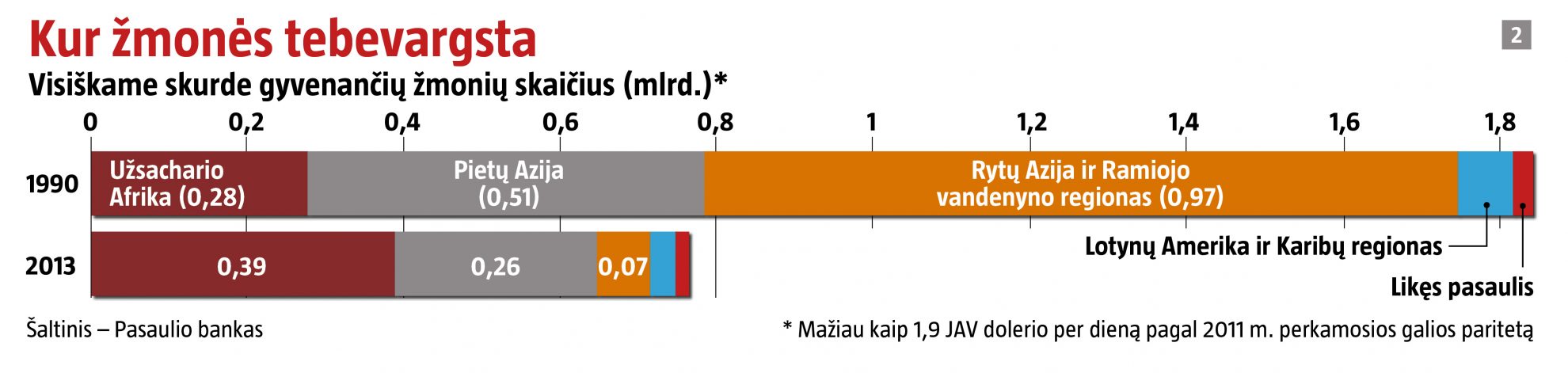 Negalima sakyti, kad Užsachario Afrikoje viskas eina blogyn. Visiško skurdo rodikliai susitraukė nuo 54 proc. 1990 m. iki 41 proc. 2013-aisiais. Bet šiame žemyne sparčiai daugėja gyventojų (prieaugis siekia apie 2,5 proc. per metus, kai Azijoje – 1 proc.), o skurstančių afrikiečių mažėja labai lėtai, todėl jų daugiau, nei buvo XX a. paskutiniame dešimtmetyje. Dabar būtent Užsachario Afrika, kurioje, palyginti su kitais regionais, visiškų varguolių – daugiausia, nulemia pasaulinius skurdo rodiklius.