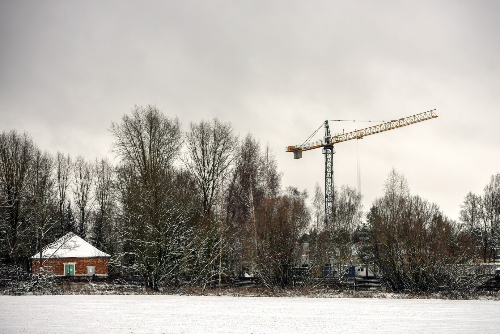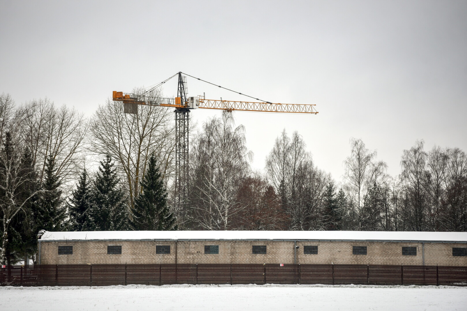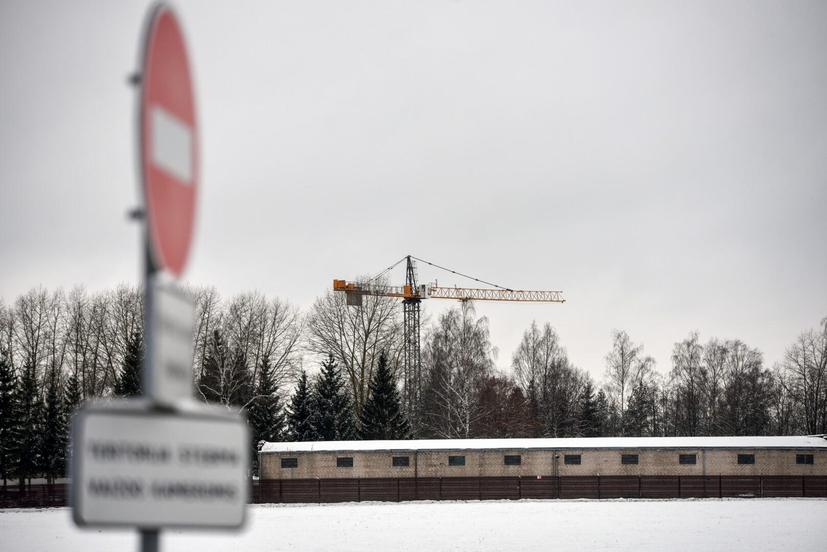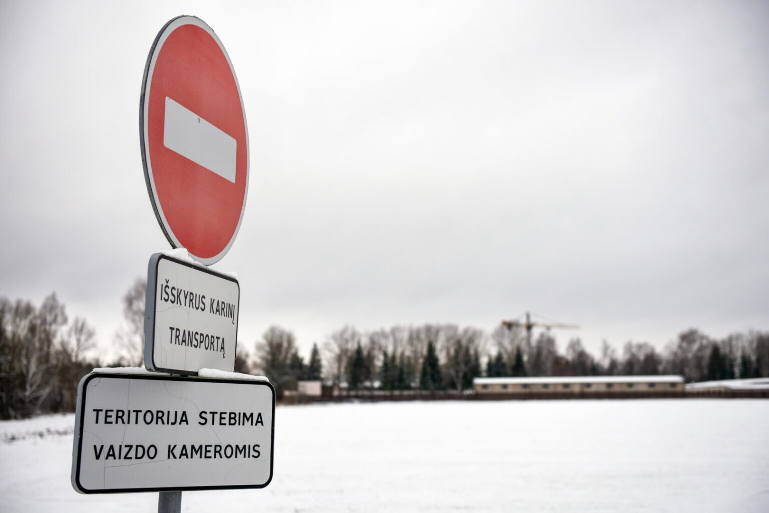 Pro Pajuostį važiuojantieji Trakiškio link jau prieš kurį laiką atkreipė dėmesį į karinio dalinio teritorijoje virš pastatų iškilusį bokštinį kraną.