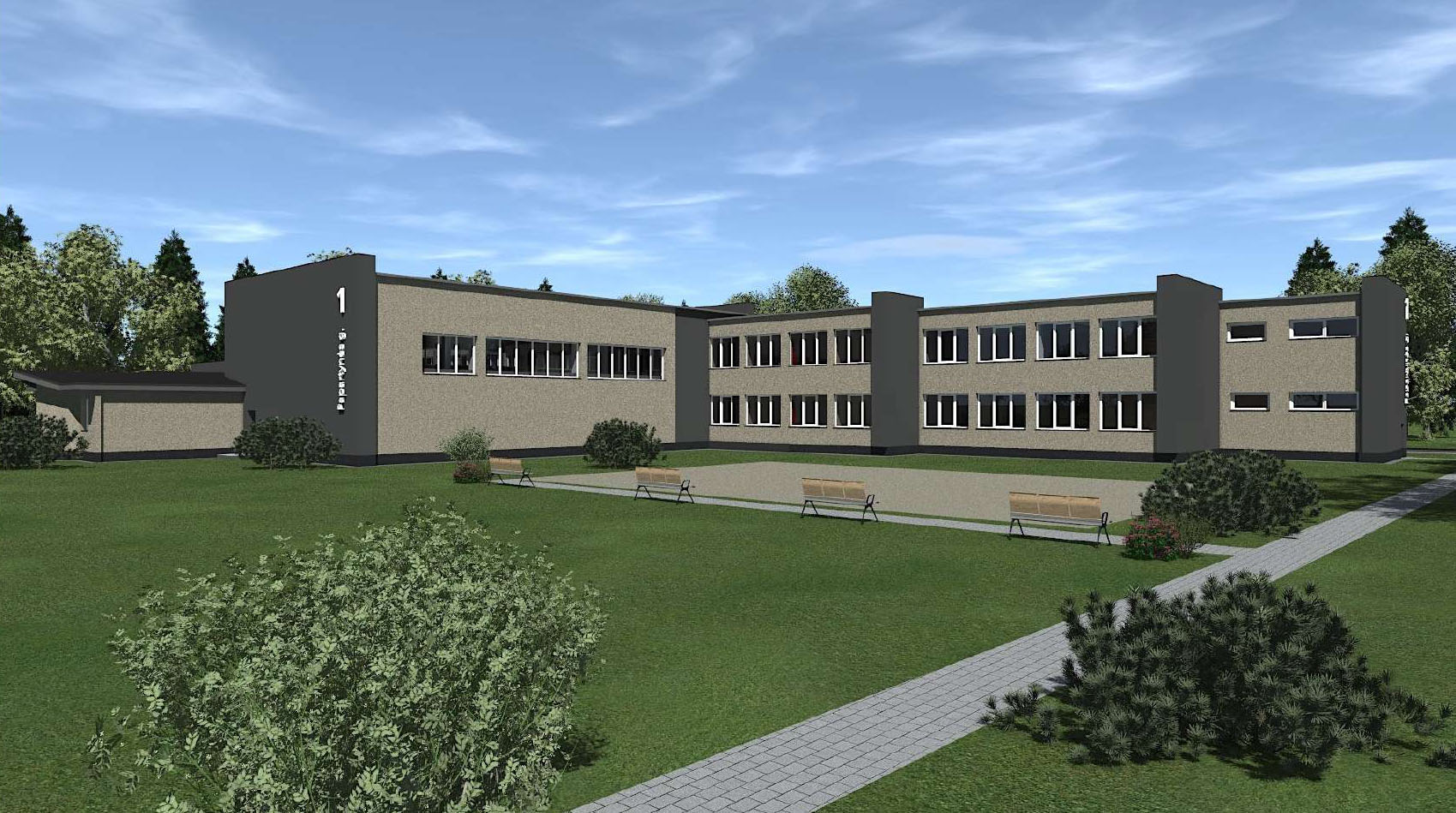 Tokiu taps buvusios Katinų mokyklos pastatas jame įkūrus senelių globos namus. UAB „ARCHITEKTAS“ vizualizacija