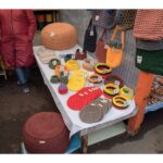 Pirkėjų dėmesiu nesiskundė ir renginių organizatorius Mindaugas Baltrūnas iš Panevėžio. Jis su kolege siūlė iš medžio drožtus virtuvės įrankius, suvenyrus iš šiaudų bei įvairius masinės prekybos žaisliukus.