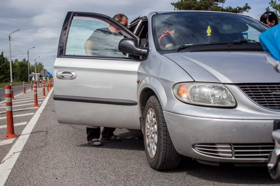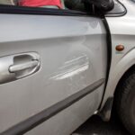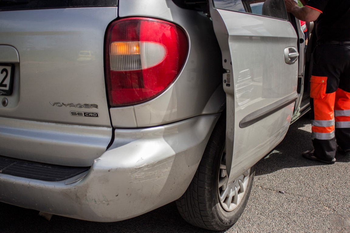 Moteris  pastebėjo, kad po įvykio truputį apgadintos ir automobilio durelės.