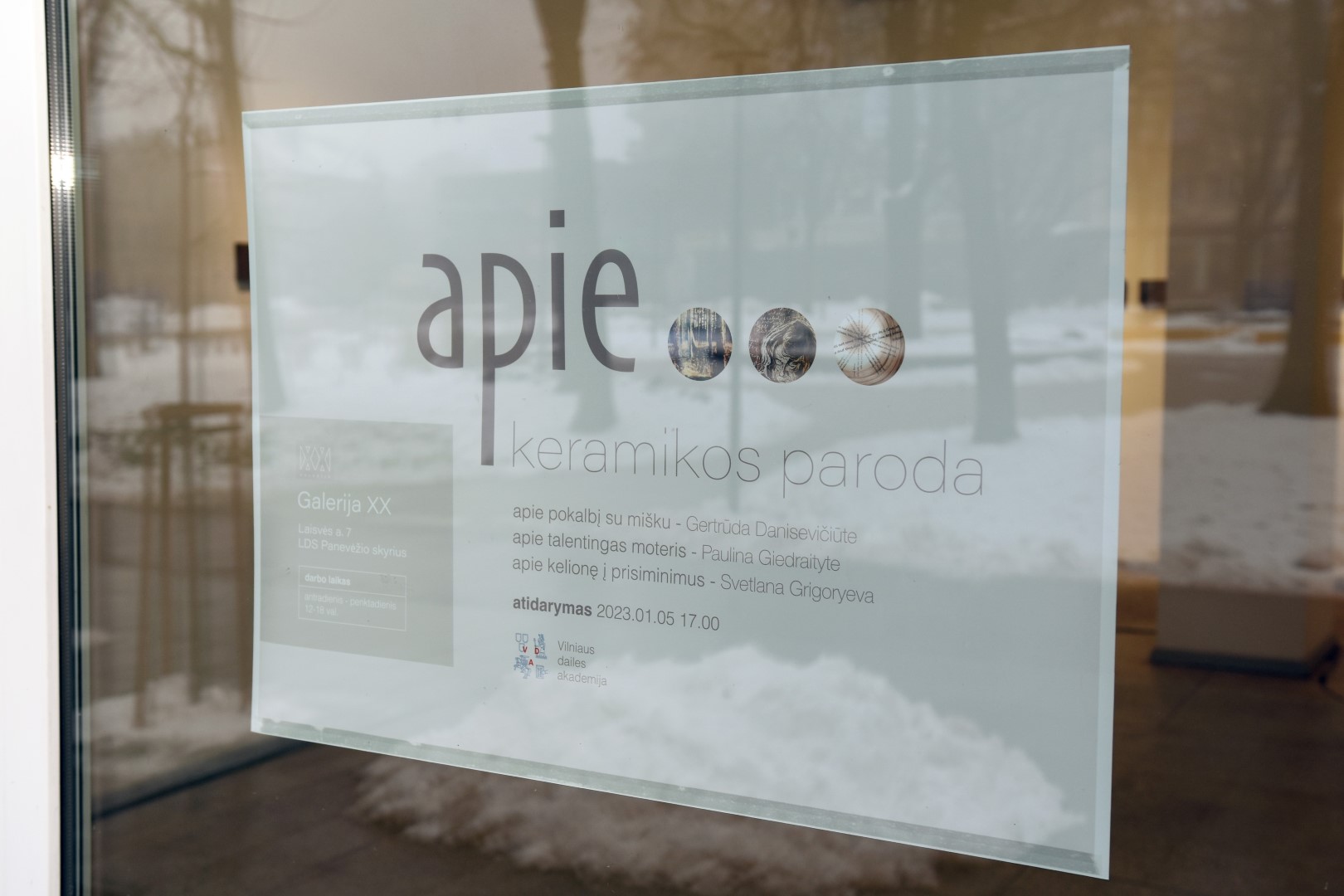 Vilniaus dailės akademijos Keramikos katedra Panevėžyje pristato skirtingu kūrybiniu braižu pasižyminčių menininkių Gertrūdos Danisevičiūtės, Paulinos Bronislavos Giedraitytės, Svetlanos Grigoryevos kūrinius.