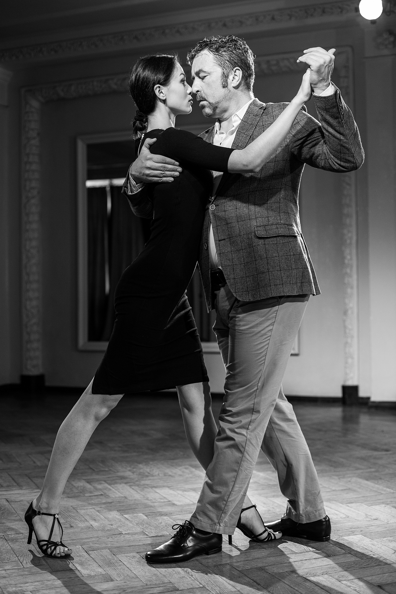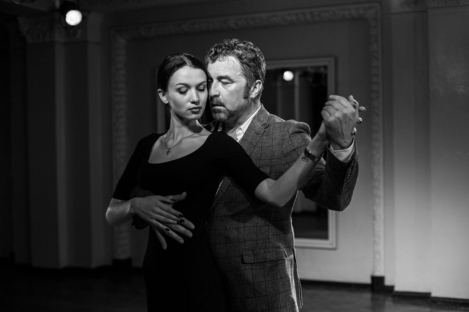 Pamokyta, kad apie tango turiu rašyti tik jį išmėginusi, avėdama šokio batelius priešais Eduardo atsiduriu ir aš. Mudu pradedame nuo elementaraus žingsniavimo po salę, bet netrukus imamės tango pradmenų ir sykiu pagrindų – kojų kryžiavimo ir vadinamųjų aštuoniukių. Netrukus gaunu pastabą. „Jūs mane tempiate, palaukite, judesį turiu inicijuoti aš“, – esminę besimokančių moterų klaidą įvardija Eduardo. Nė nemėginu teisintis, kad tai dėl to, jog tiesiog nudžiugau prisiminusi, kuria koja žengti atgal…