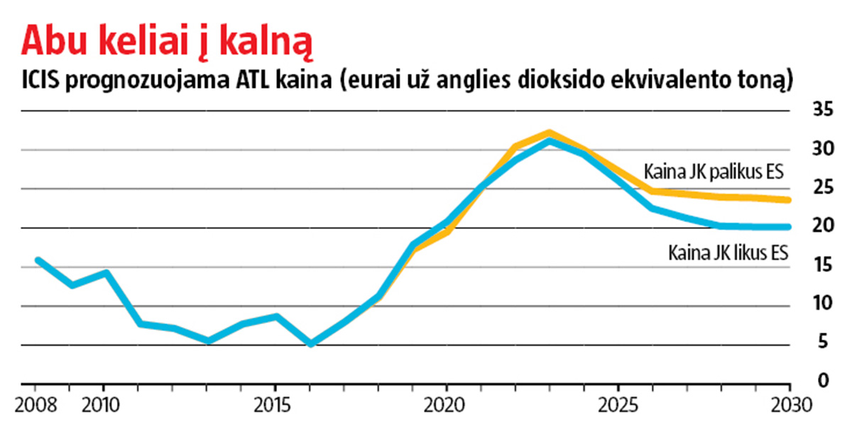 Kovą nuo šių metų pradžios ATL pabrango daugiau nei 40 proc. – iki 11 eurų už tCO2e. Greičiausiai tai tik pradžia. ICIS sukurtas ilgalaikis kainų prognozės modelis rodo, kad dėl reformos ir ATL trūkumo iki 2022 m. jo kaina peržengs net 30 eurų.