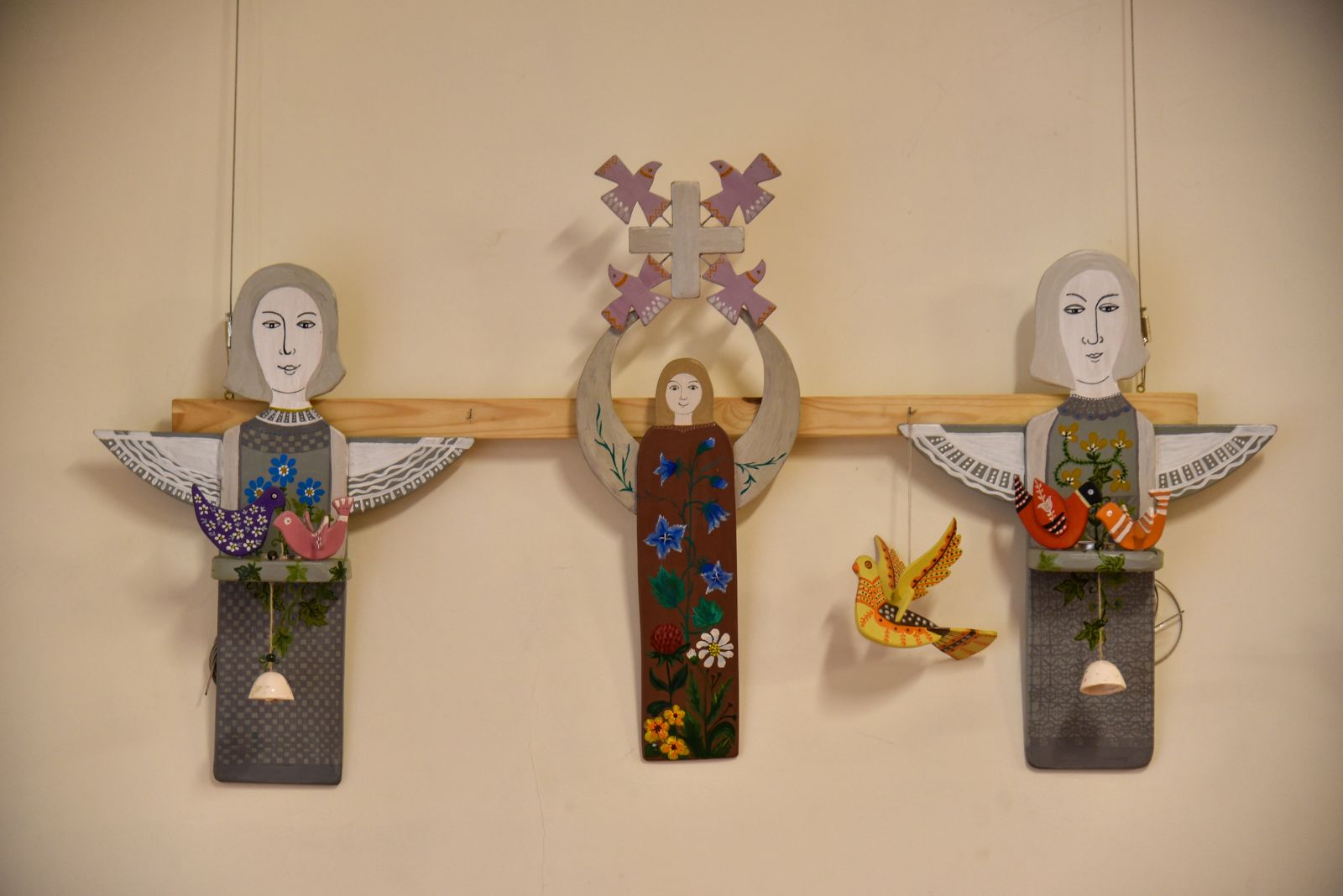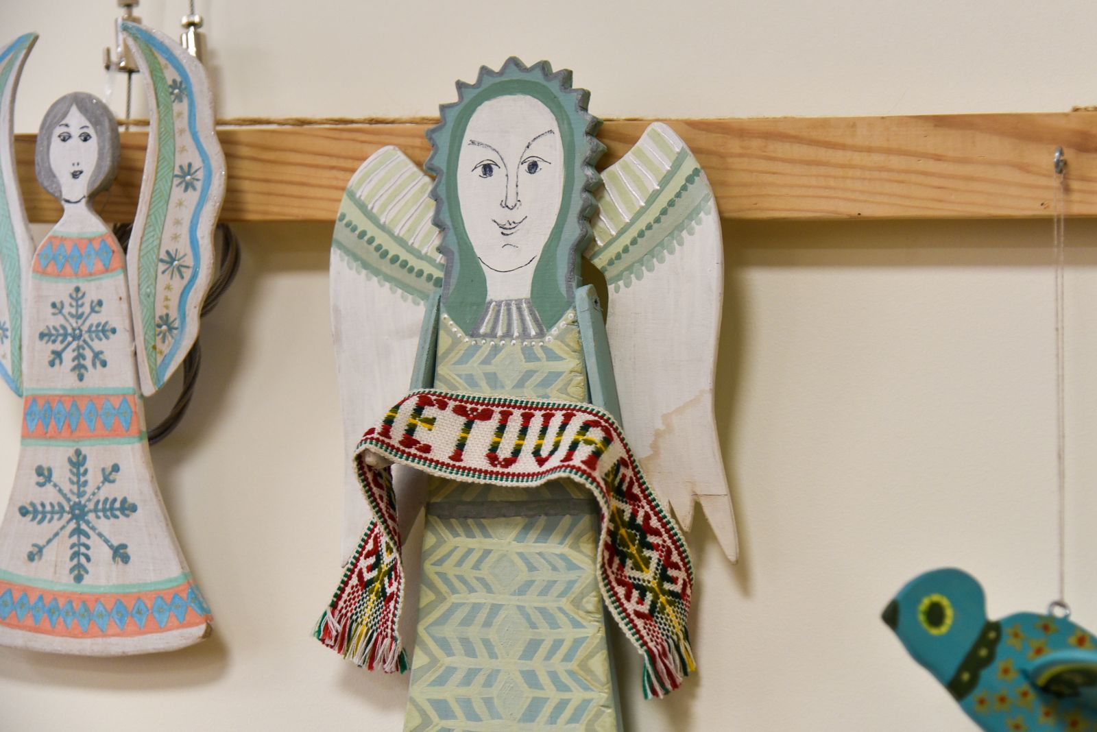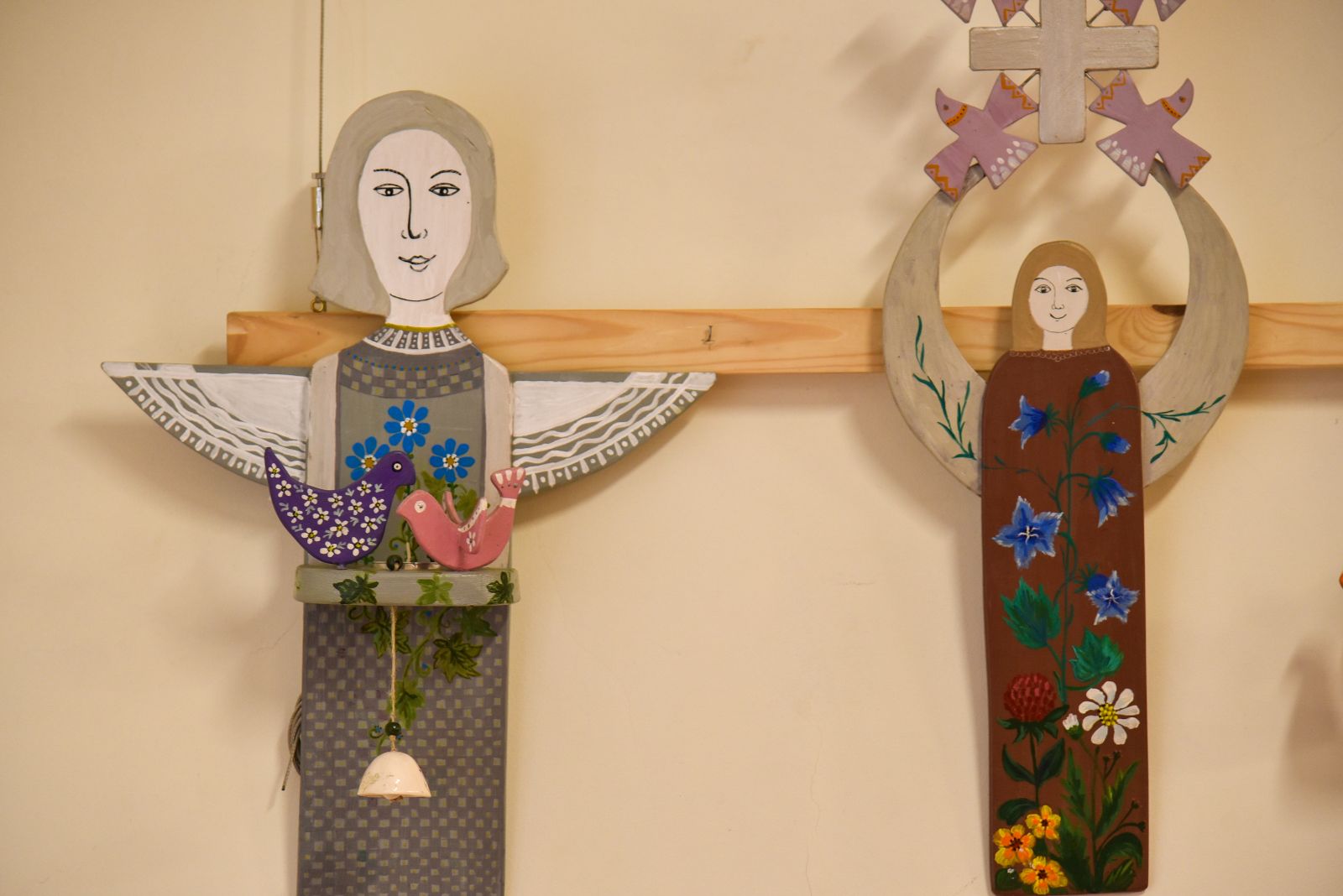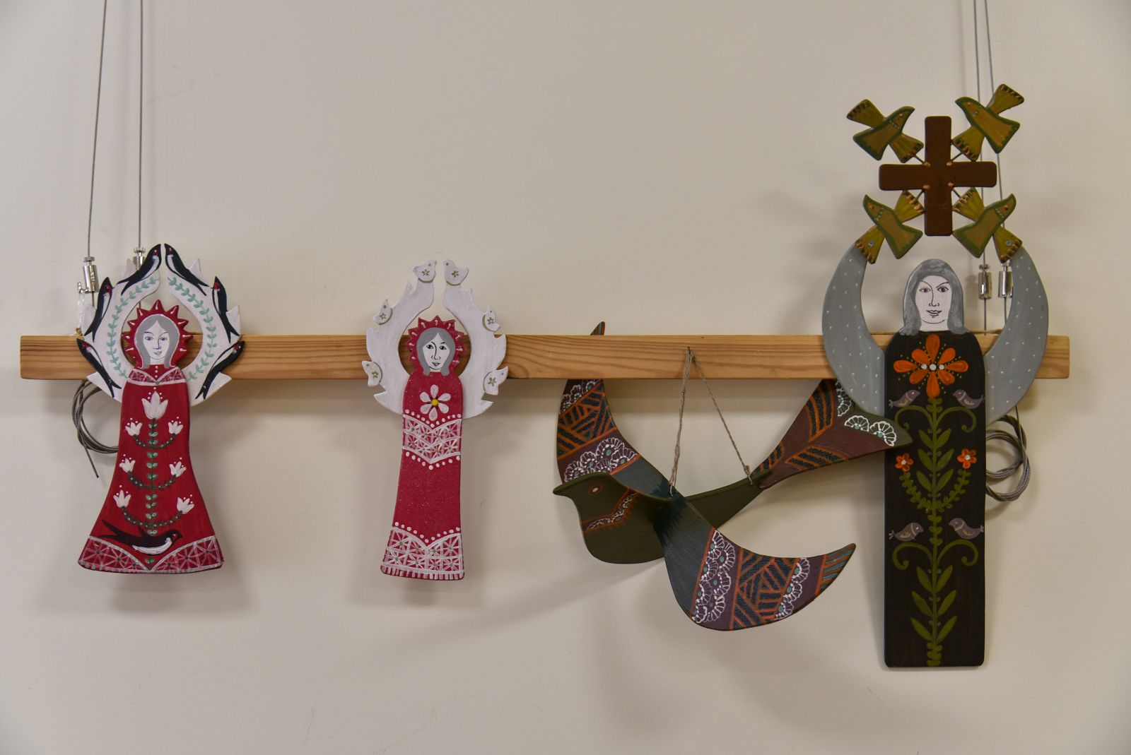 Parodos autorės kūriniai įdomūs ir prasmingi, dažno angelo, kartais ir paukščio figūrą puošia gyvybės medį vaizduojantis piešinys.