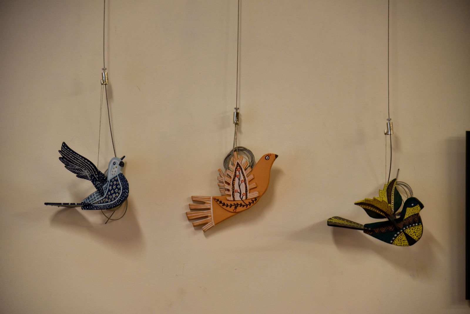 „Paukščiai ir angelai savotiški tarpininkai tarp žemės ir dangaus. Abu turi mistikos ir duoda daug laisvės fantazijai.“ – sako parodos autorė.