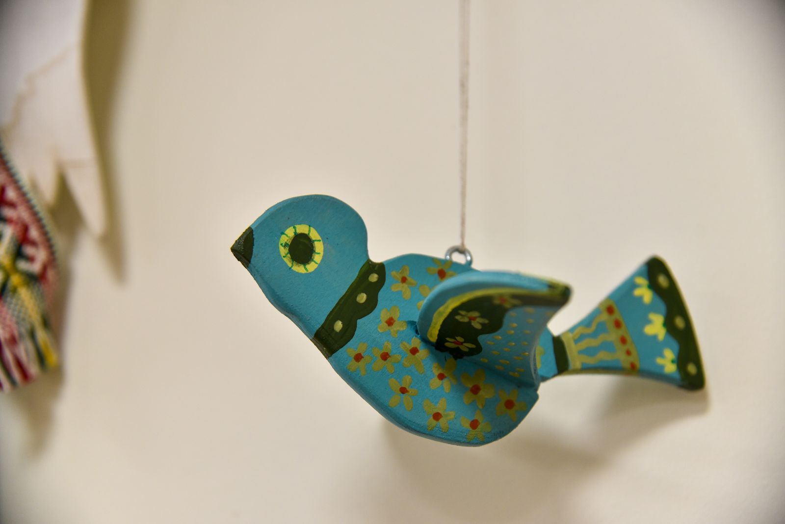 „Tapyti ant medžio sumaniau gana netikėtai – paprašiau vyro, kad pagal mano piešinius išpjaustytų iš faneros paukščių ir angelų figūras. Vyras mielai ėmėsi darbo“, – prisimena tautodailininkė.