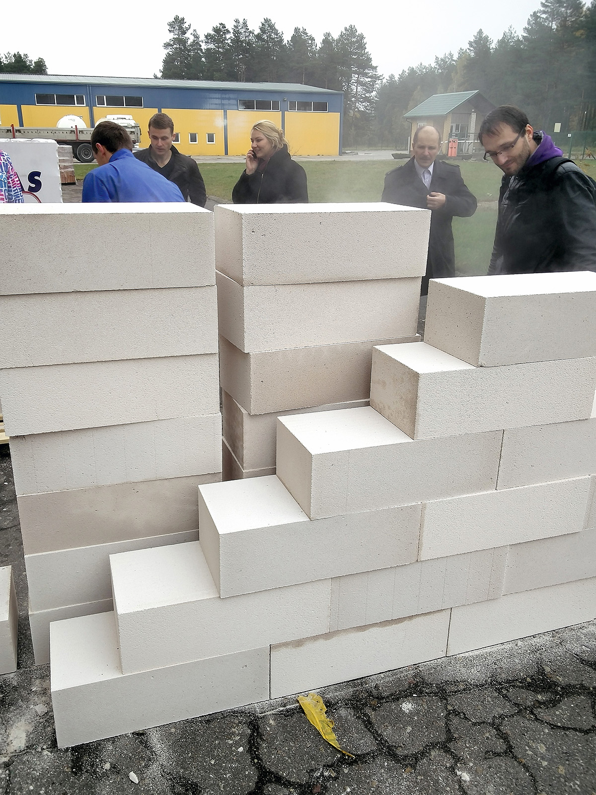 Darbas su jais. Blokeliai yra tuštymėti, tačiau kiaurymės yra tokios formos ir taip išdėstytos, kad iš jų būtų galima statyti laikančiąsias pastatų sienas. Kiaurymės sumažina blokelių svorį (kartu – ir apkrovą pamatams) ir padidina šiluminę varžą. Blokeliai didelių matmenų, įvairių formų, tarpusavyje vertikaliai jungiami be skiedinio ir labai tiksliai, todėl sumažėja ne tik siūlių, bet ir išvengiama šilumos tiltelių susidarymo.