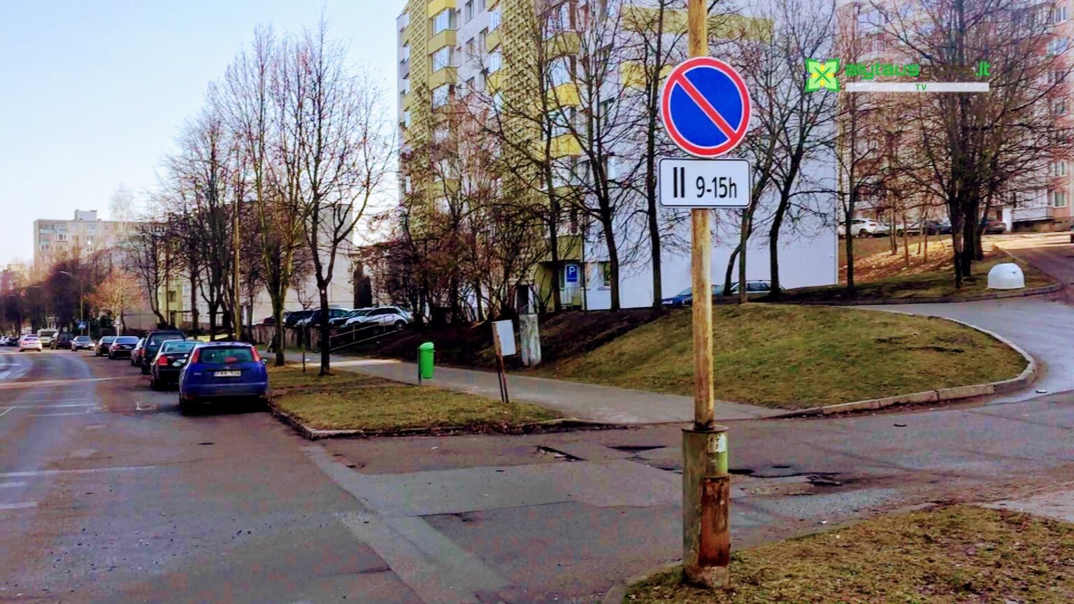 Šis ženklas pastatytas tam, kad komunalininkai galėtų nuvalyti važiuojamąją dalį. Rytą tik dalis automobilių buvo patraukti. Tai – jau ne pirmas mėginimas reguliuoti automobilių statymą siekiant išvalyti gatvę.