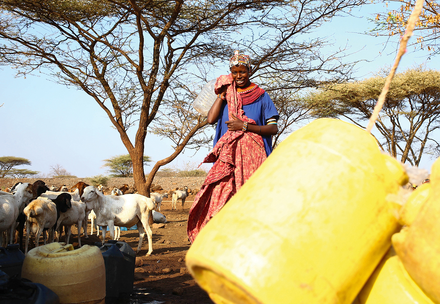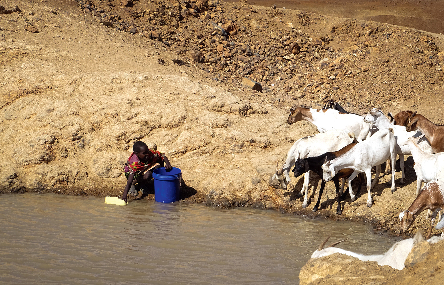 Toli miške prie naujo kinų nutiesto kelio radau grupelę karves į proskyną genančių sambūrų. Vienas tradiciniu apklotu susijuosęs, saulei liesą krūtinę atidengęs vyras kibiru, padarytu iš Jungtinių Valstijų tarptautinio vystymosi agentūros skardinės, iš primityvaus šulinio pasėmė vandens ir supylė jį į medinį lovį. Grupės vadovas Ukumas Letipia paaiškino, kad prie šio vandens šaltinio jie žingsniavo aštuonias valandas nuo 2 val. nakties. 18 val., kai kaitra atlėgs, jie trauks atgal pas žmonas ir vaikus. Per pastaruosius kelis mėnesius nugaišo 21 iš 40 jo raguočių. „Kai kurios karvės kris eidamos atgal, – pareiškė jis. – Bet ką aš galiu padaryti?“