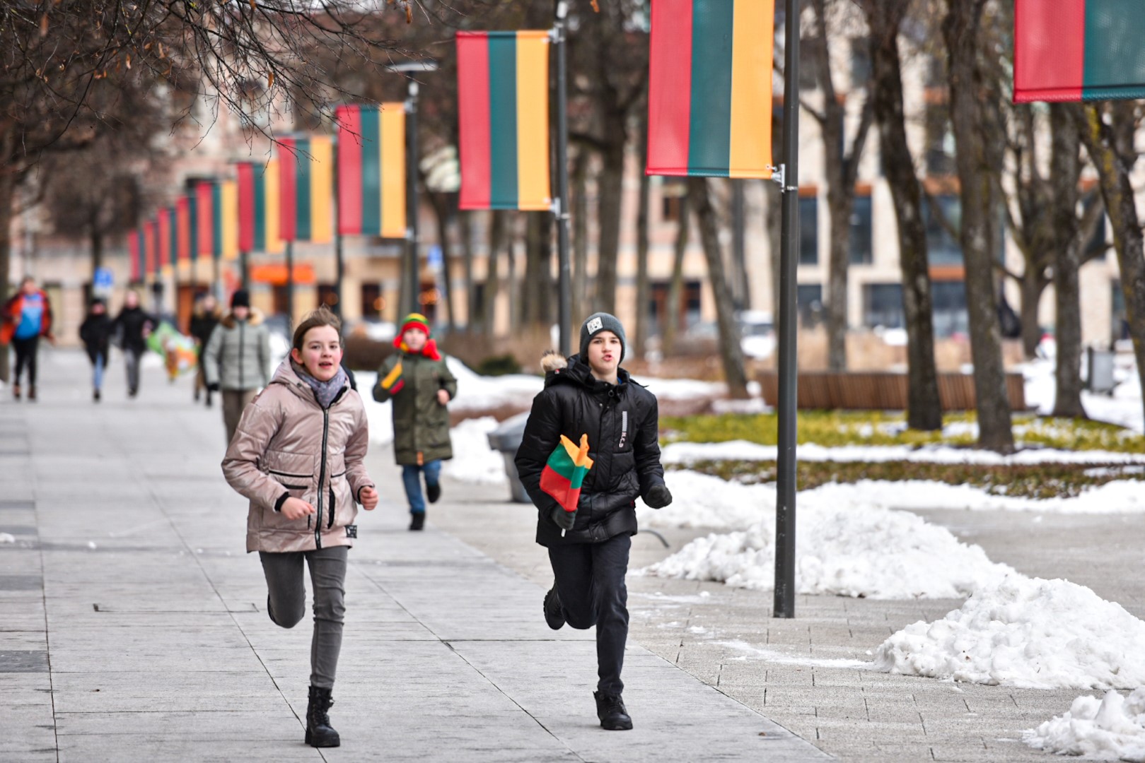Svarbiausia – paėmus trispalvę vėliavėlę apsukti ratą ir ją perduoti kitam.