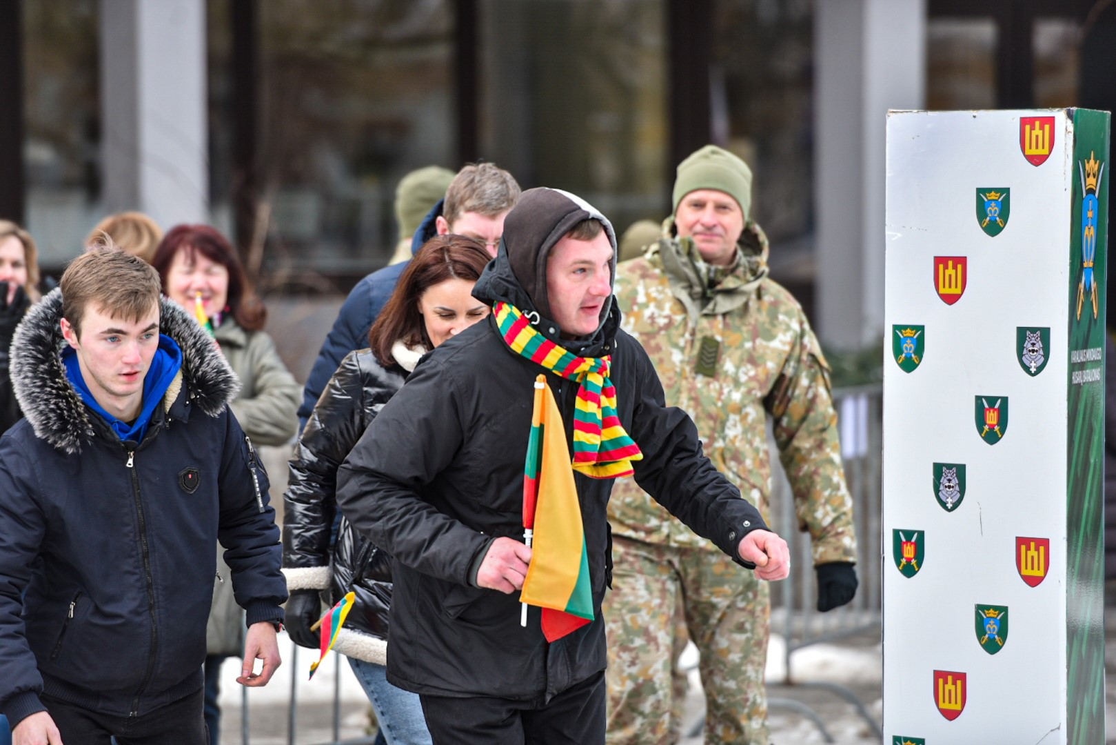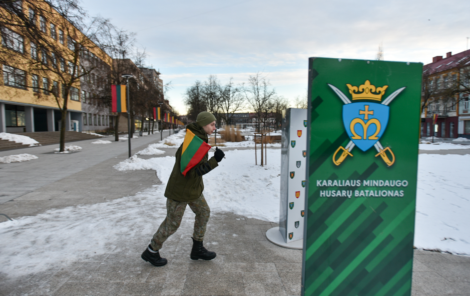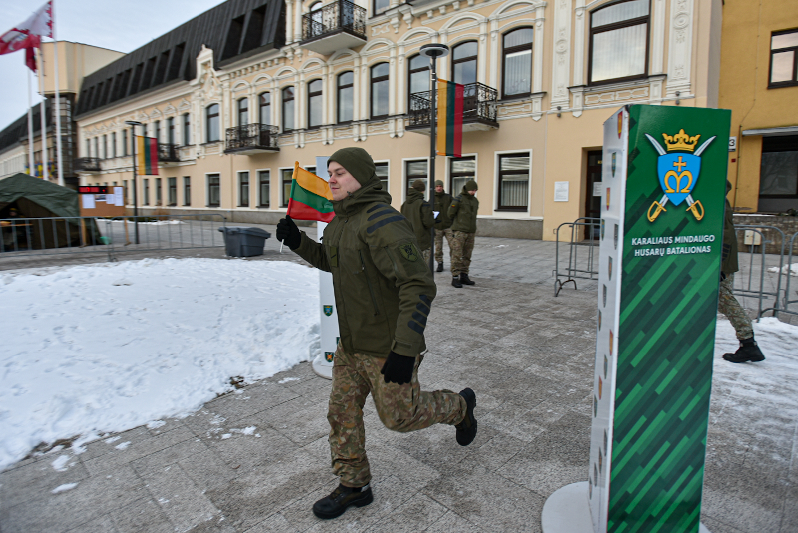 Kovo 11-osios bėgimą organizuojančio Karaliaus Mindaugo husarų bataliono kariškis Tomas Malinskas pasakoja, jog kasmet pirmasis į estafetę stoja vienas iš vadų.