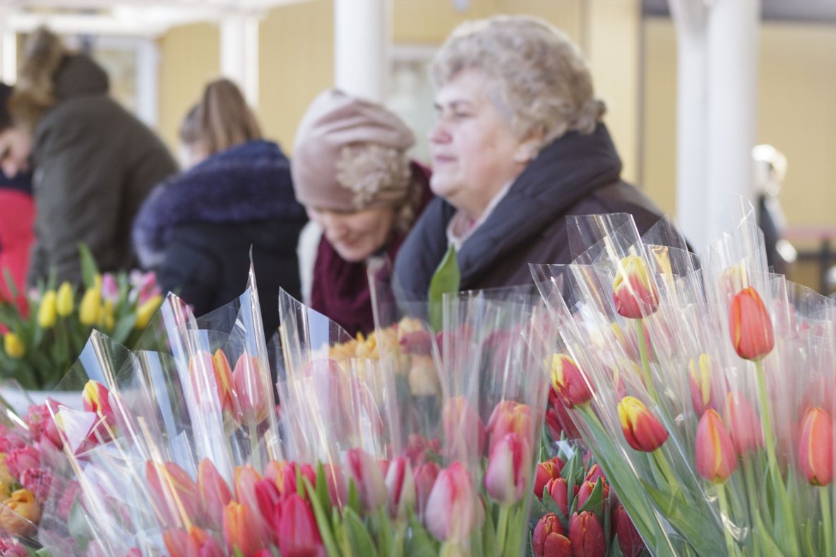 Nė viena kovo diena taip nepakvimpa pavasariu ir šilta moteriška šypsena, kaip Tarptautinė moters diena. Nuo pat ryto vyrai nuo prekystalių glėbiais šlavė įvairiausių spalvų ir formų tulpių žiedus.