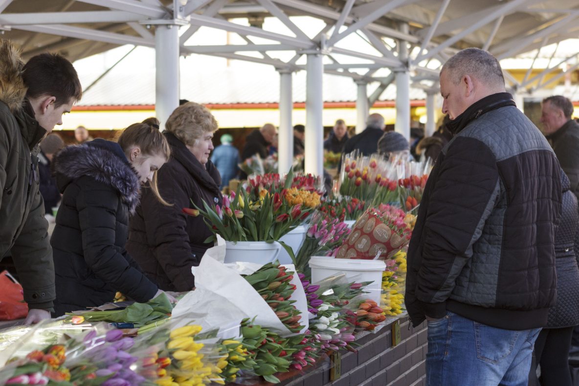 Turgaus ir parduotuvių pardavėjai šiandien tikriausiai kelis kartus padidins prekybos gėlėmis apyvartą. Dėl žiedų vyrai stojo į ilgas eiles. Ir jei į jas ir įsimaišė koks tik kefyro užsukęs prašalaitis, tarp tulpių pirkėjų turėjo pasijusti labai nejaukiai.