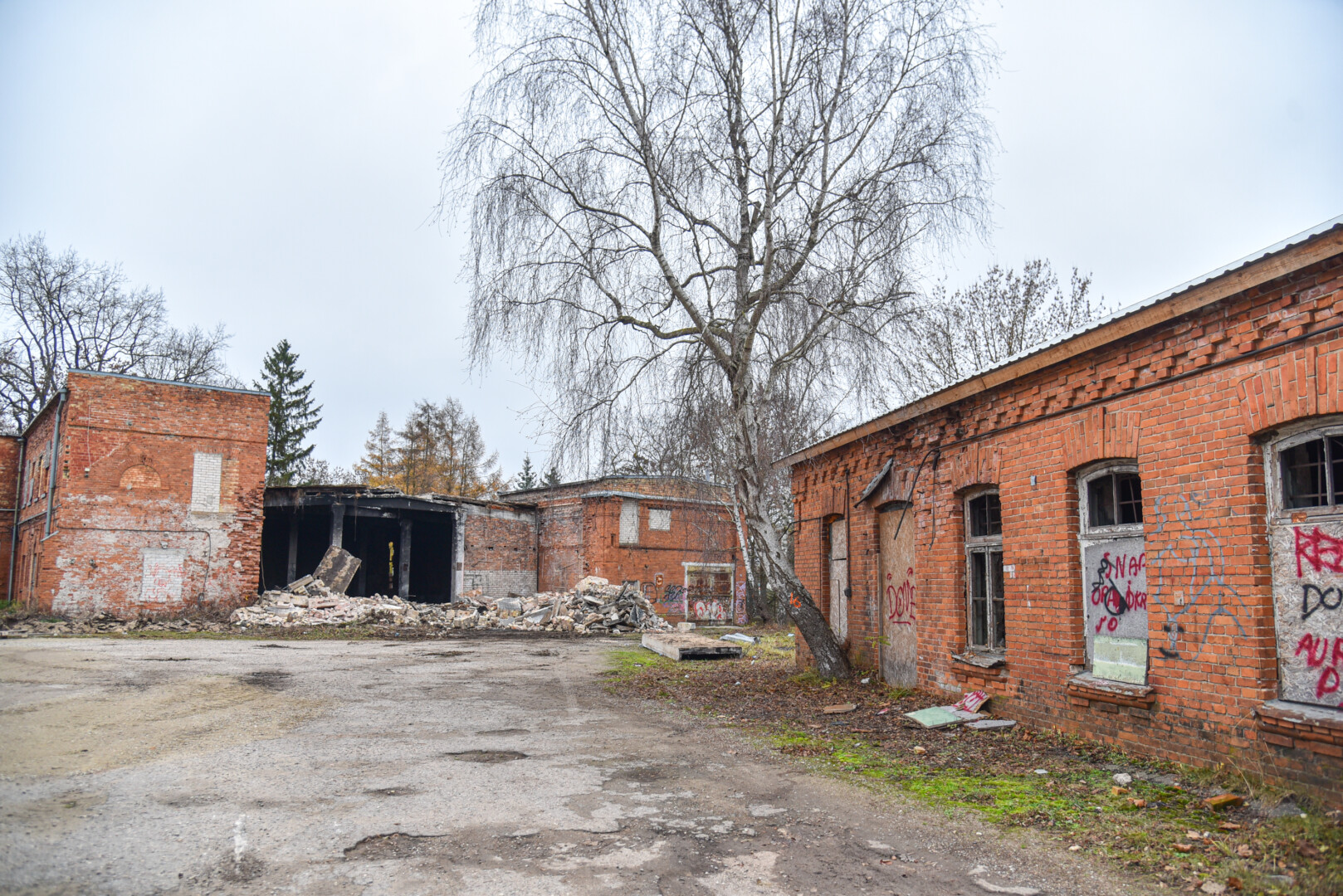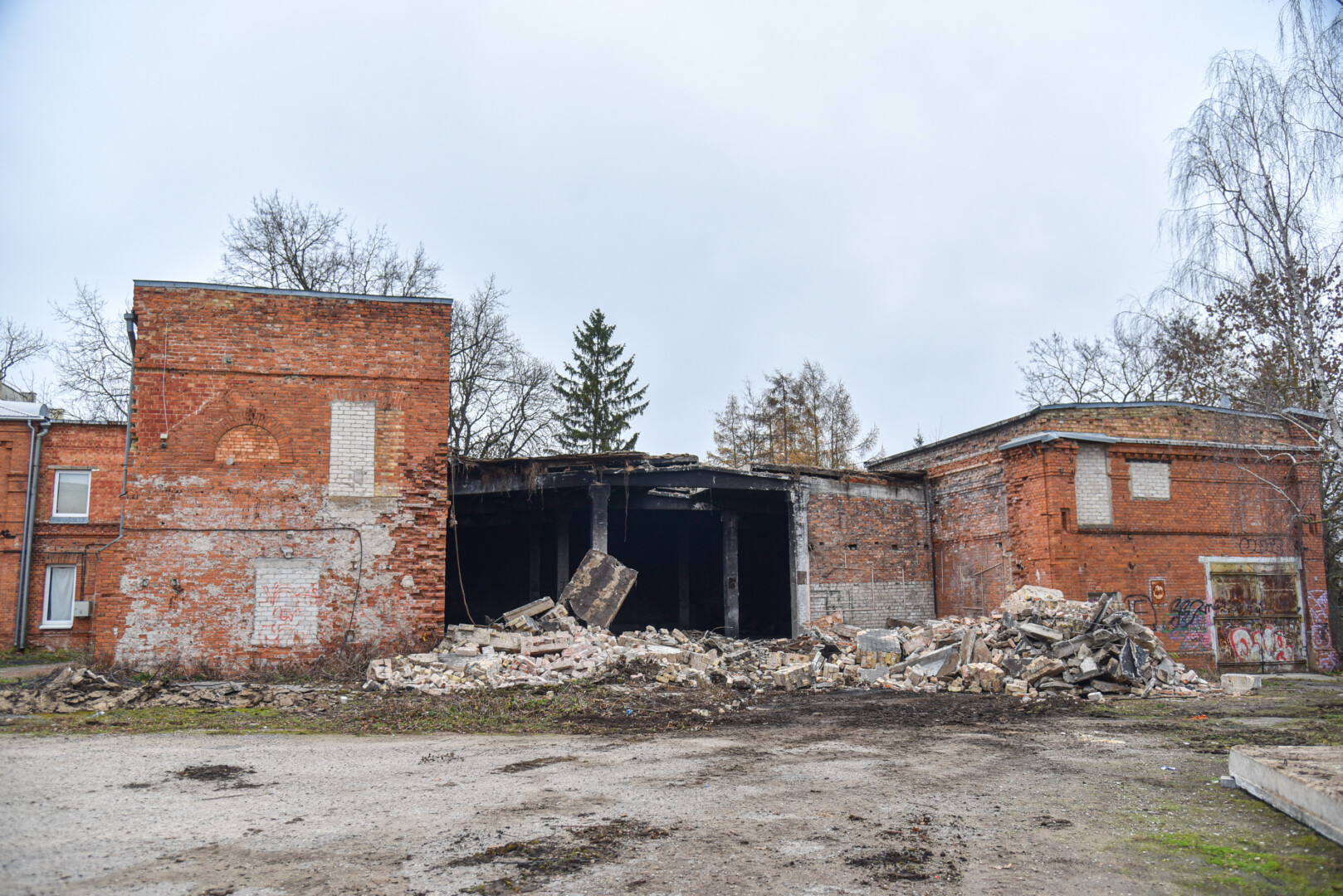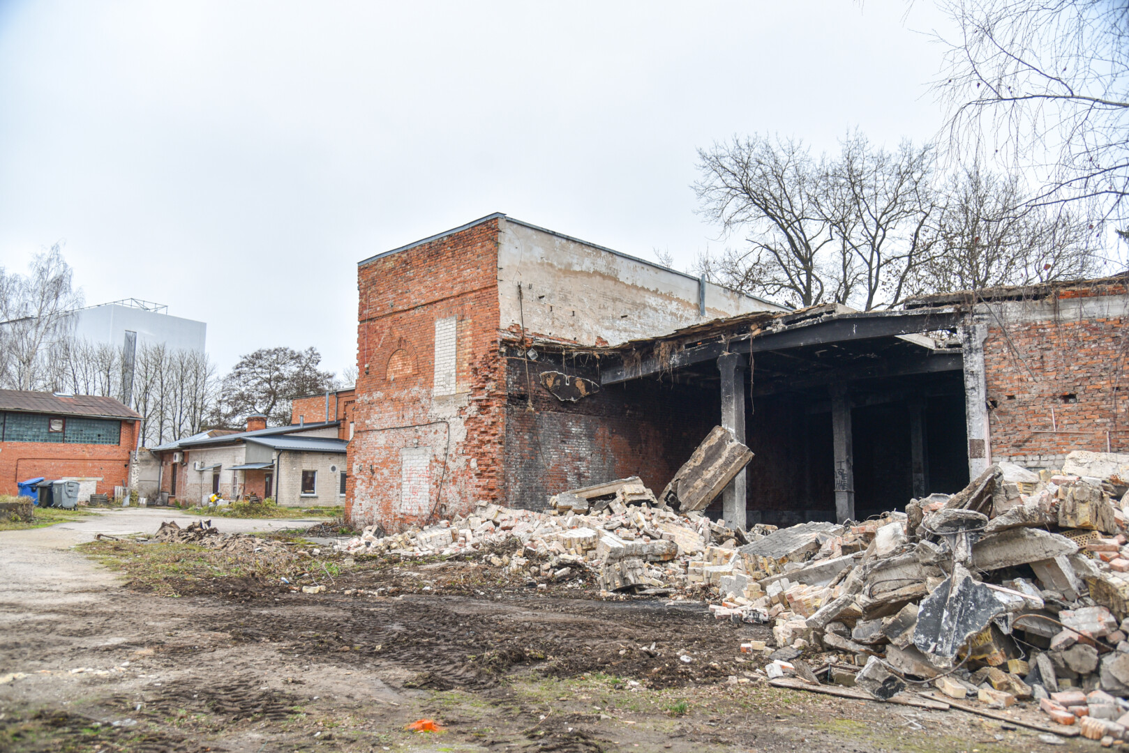 Šiuo metu konservų fabriko kieme jau zuja technika – griaunami beverčiai pastatai ir tvarkoma visa konservų fabriko teritorija.
